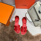 - Material: Sandal in calfskin with straight cut edges, "H" cut-out detail and thin ankle strap.