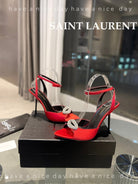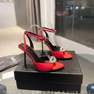 SL AYERS CRYSTAL SANDAL RED SATIN