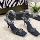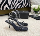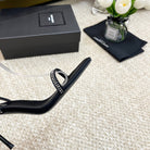 SL GEORGIA WHITE CRYSTAL SANDALS PUMP BLACK SATIN