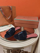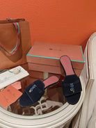Summer Charms Sandals in Navy Suede Maroon Lambskin