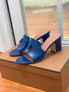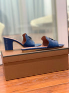 Summer Charms Sandals Mule Blue Crocodile Pattern Pink Lambskin