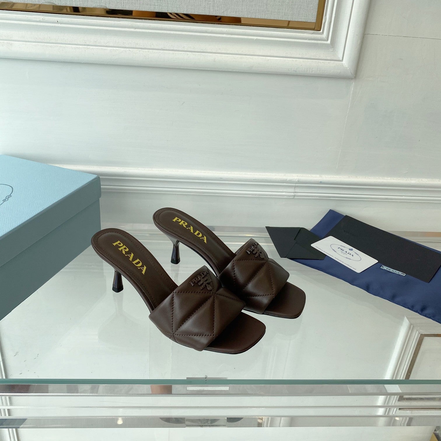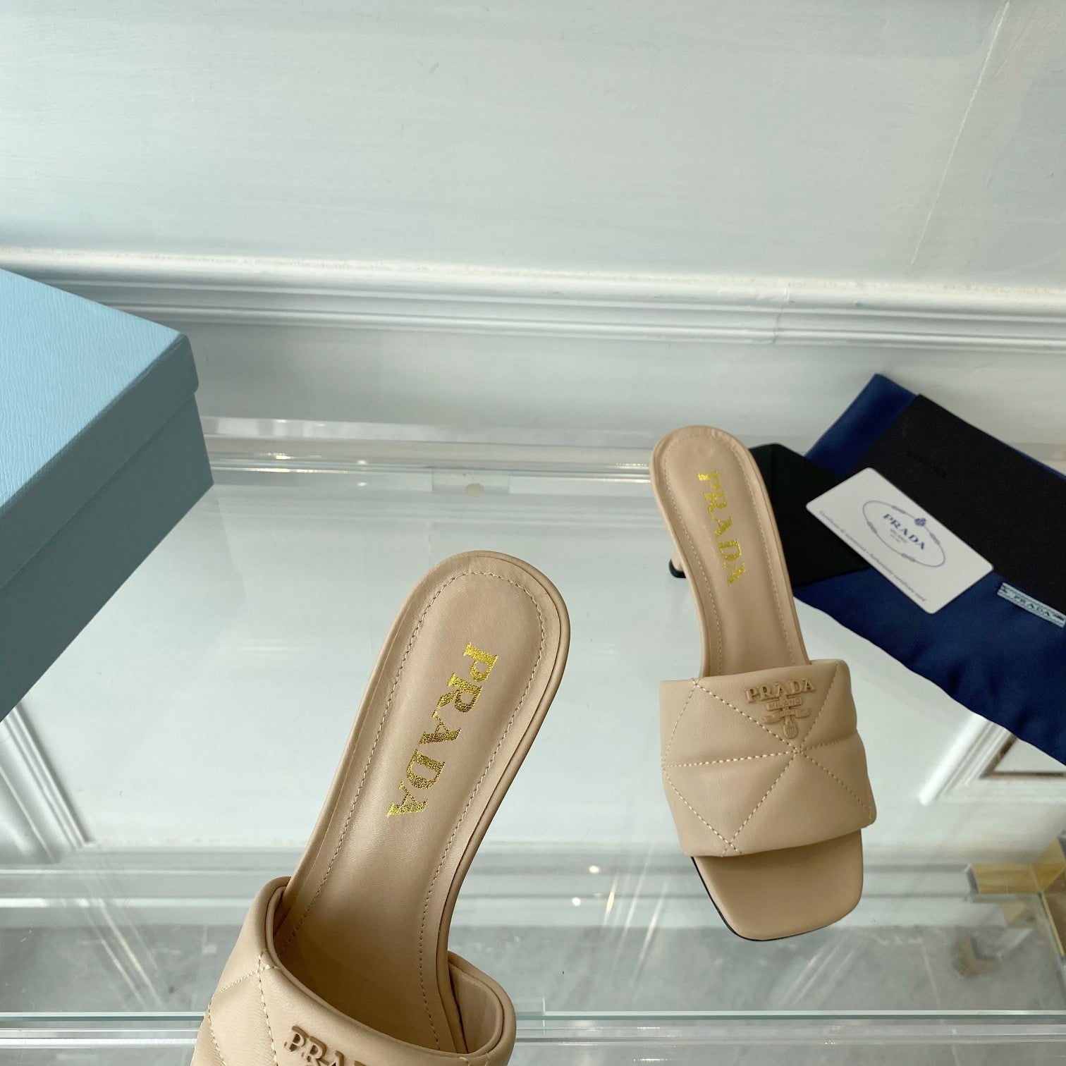 Pra Heeled Sandal 65 Square Sole Quilted Sky Blue Leather