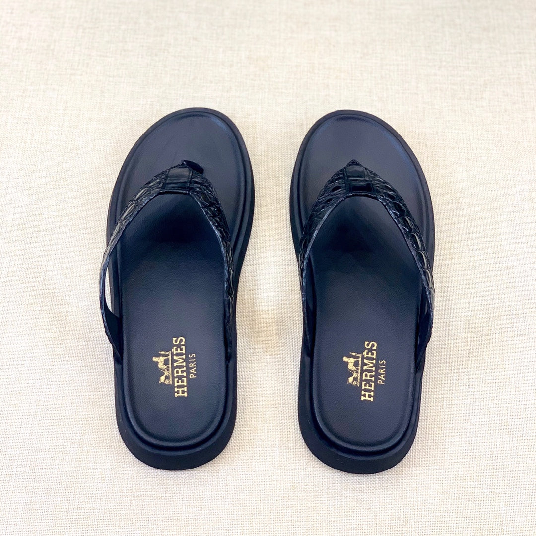 HM Men's Thong Sandals Black Rubber Sheepskin 561667