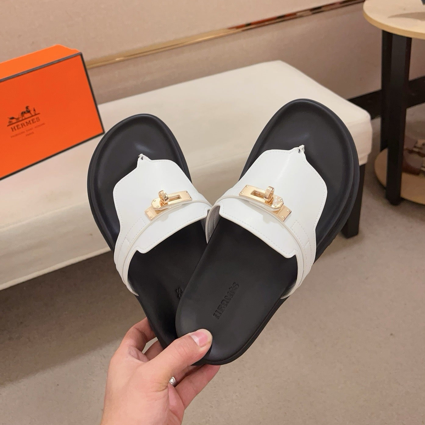 HM Men's Thong Sandals Brown Rubber Sheepskin 561669