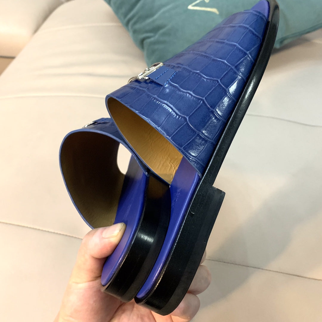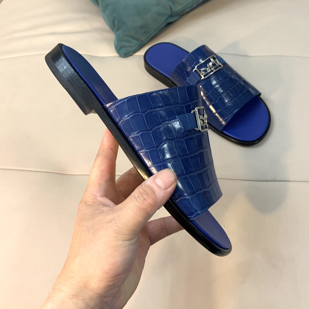 HM Men's Slide Navy Blue Cowhide Leather 588997