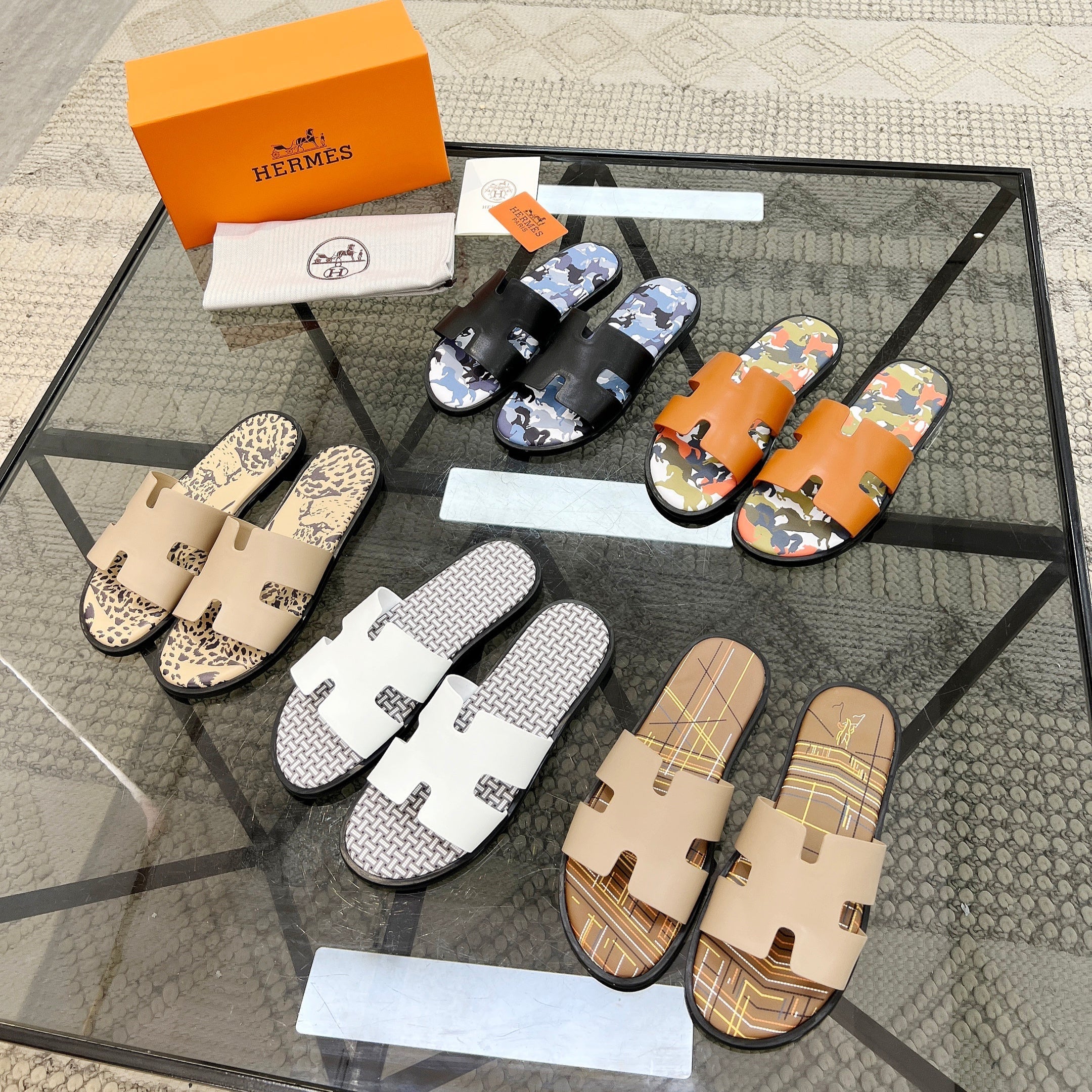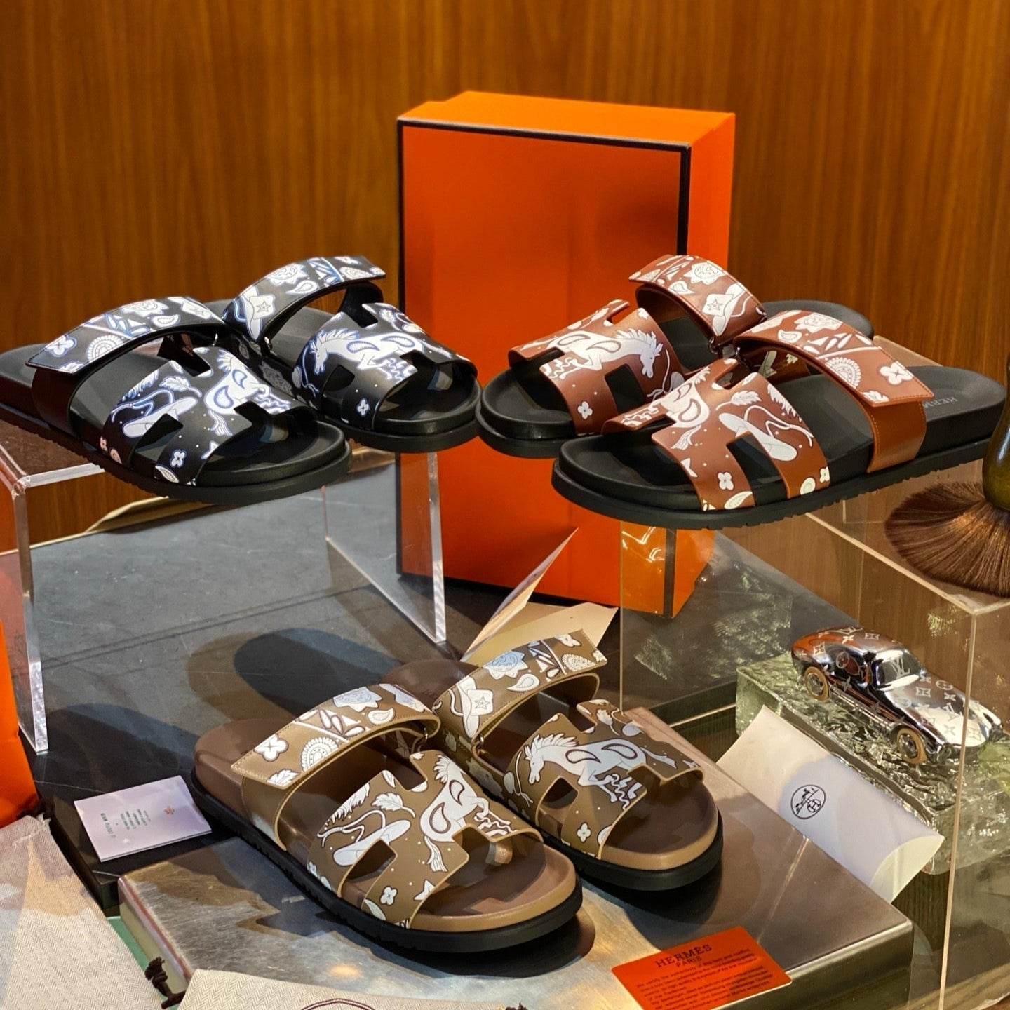HM Men's Cross Strap Slide Beige Cowhide 544097