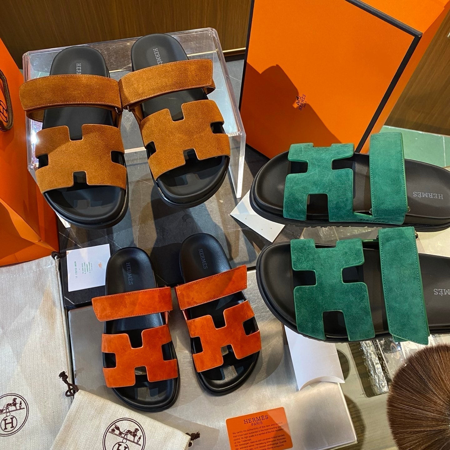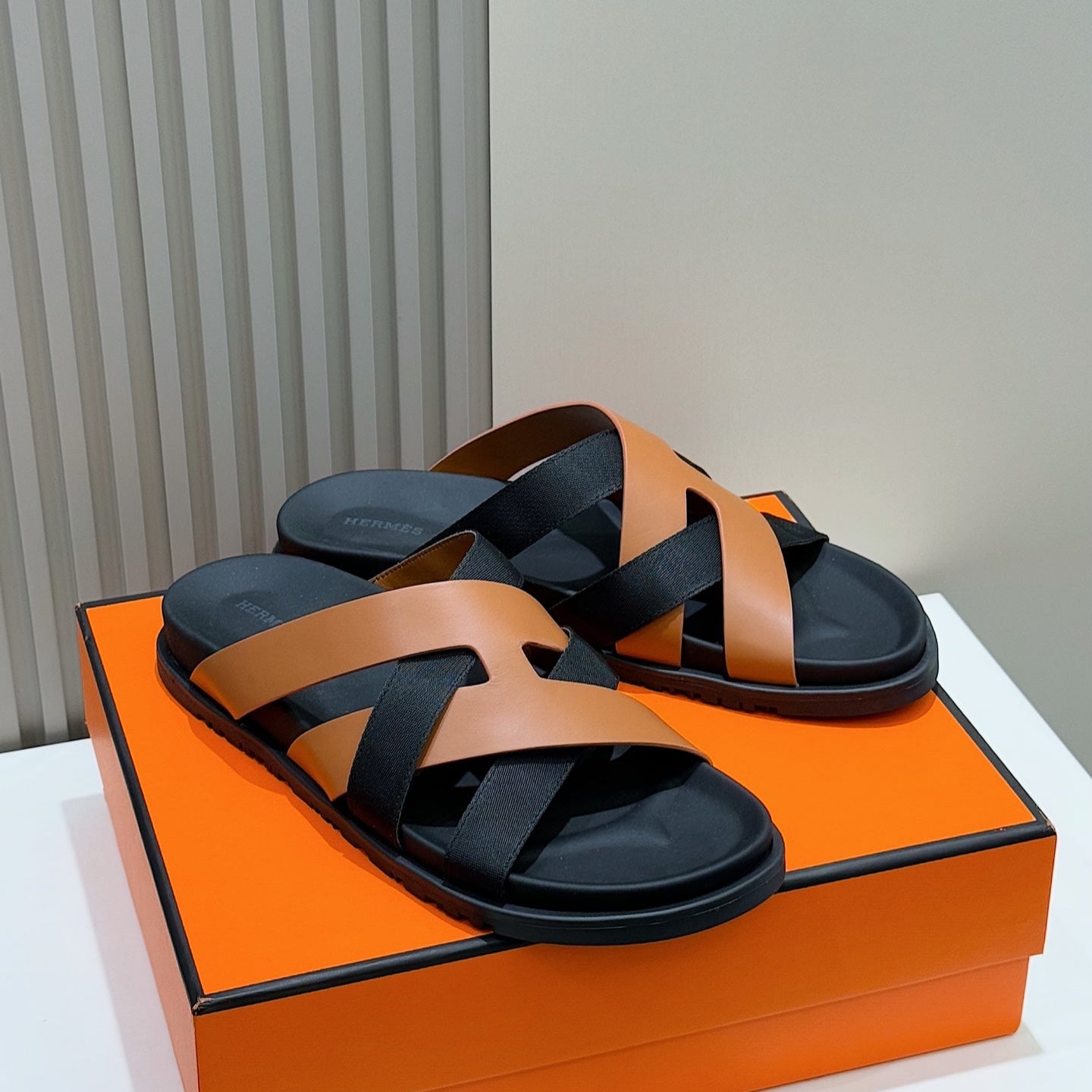 HM Men's Cross Strap Slide Orange Cowhide 544098