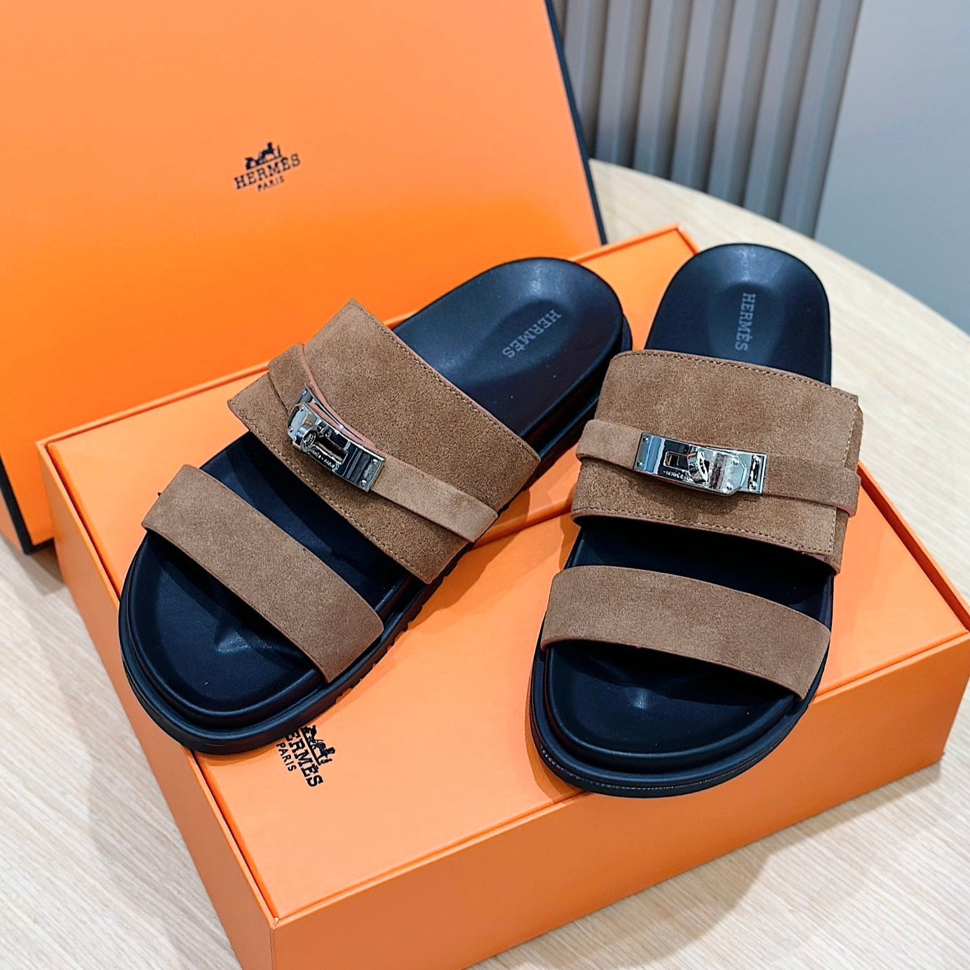 HM Men's Kazimir Slide Brown Back Calfskin 562769