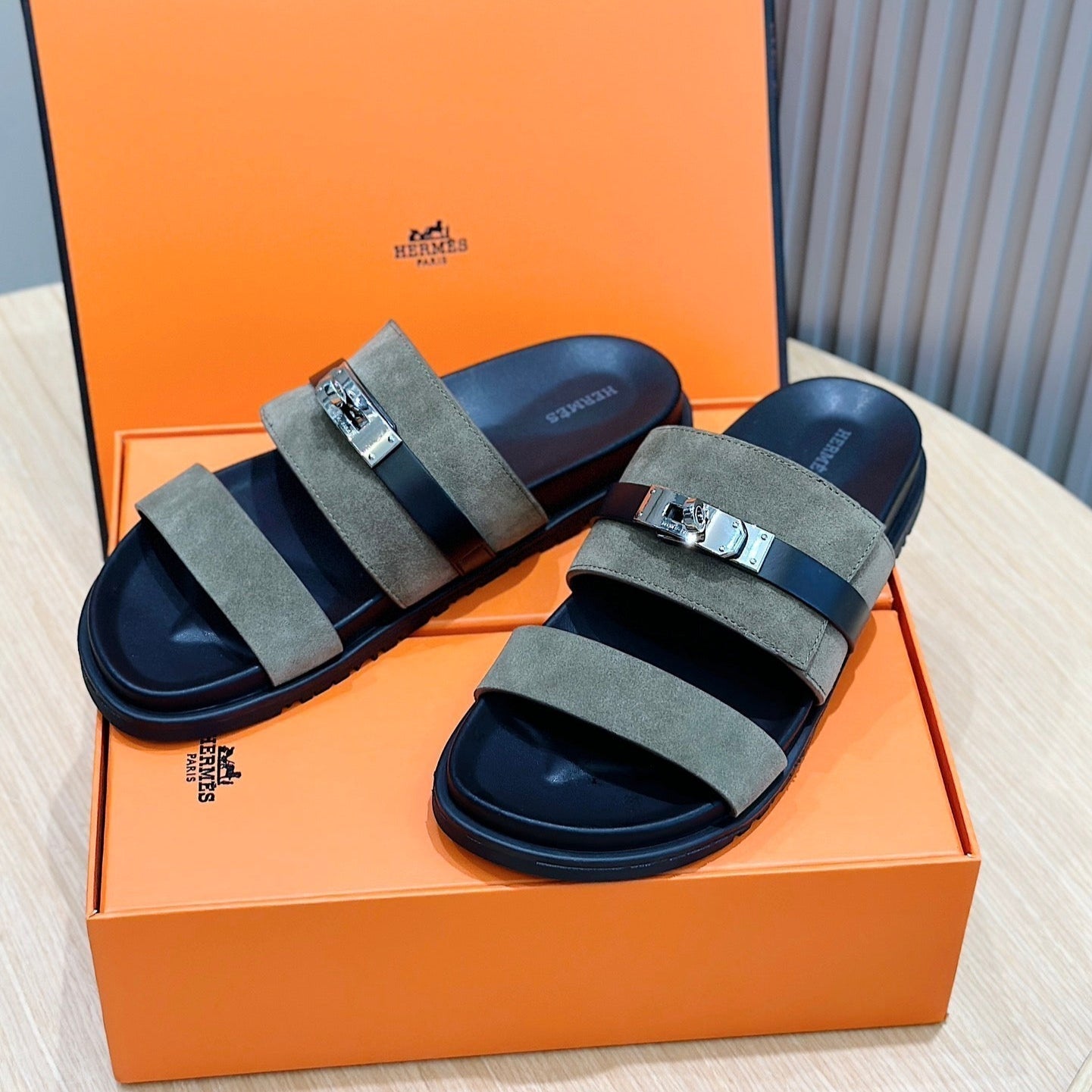 HM Men's Kazimir Slide Grey White Calfskin 562768