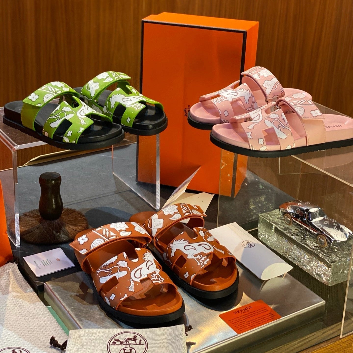 HM Men's Kazimir Slide Black Orange Calfskin 562774