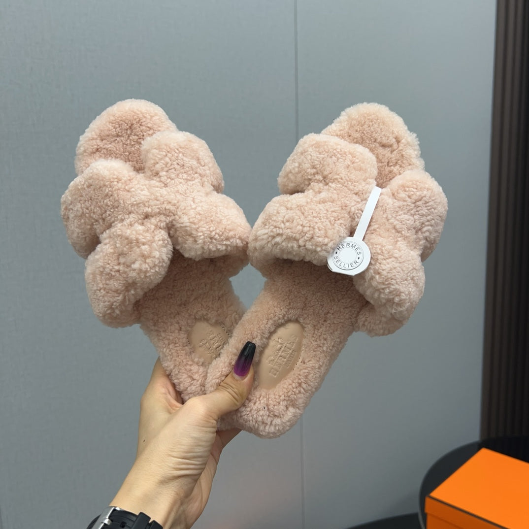 HM Chypre Sandal In Light Beige Lamb Wool 984185