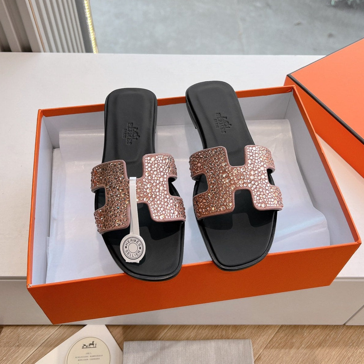 HM 25 Oran Sandal Orange Calfskin Crystal Embellished