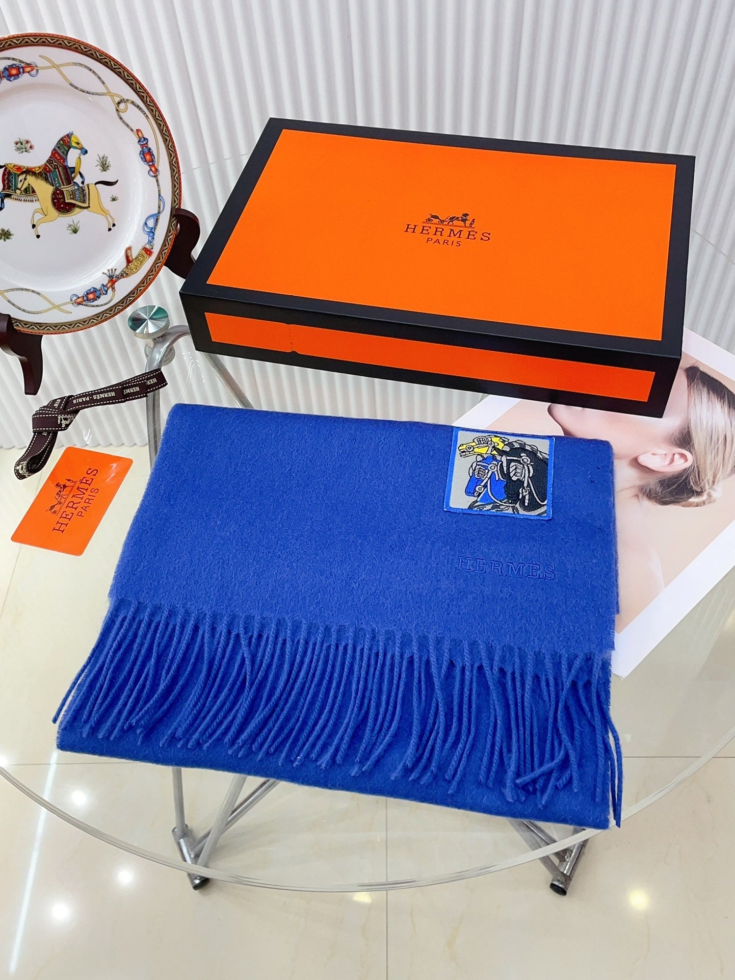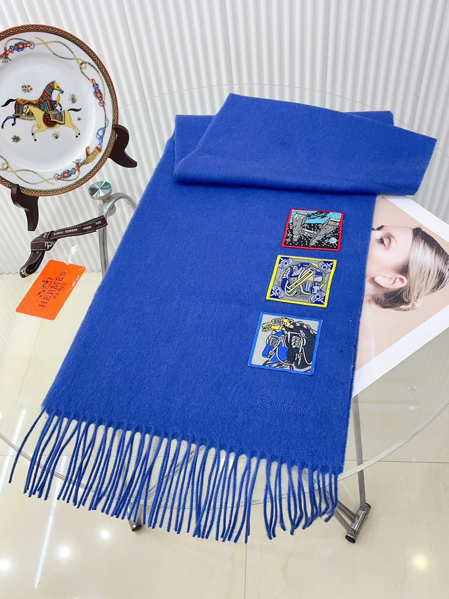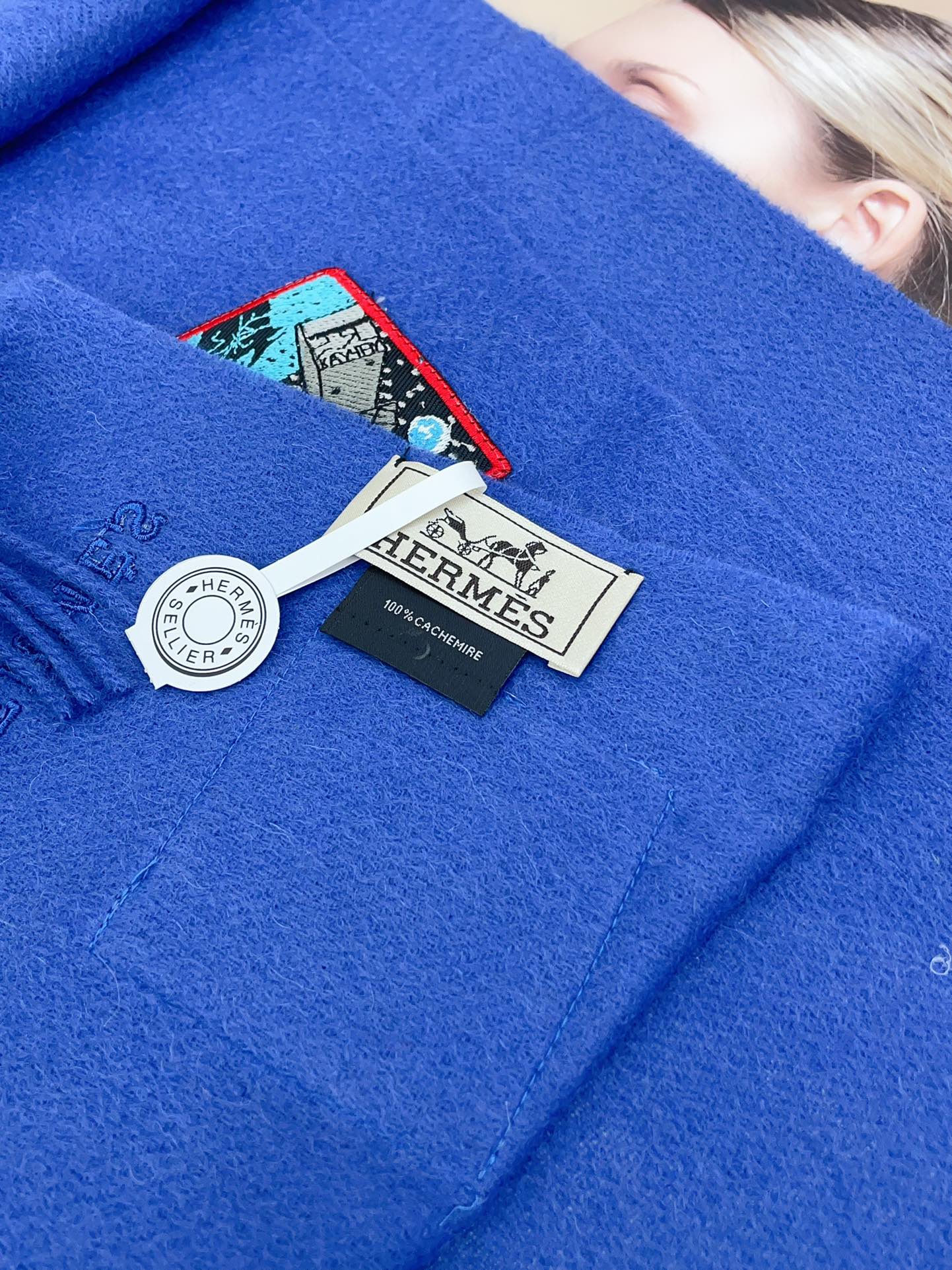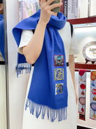BADGES SOIE MUFFLER 180 CM SCRAF IN COBALT BLUE CASHMERE