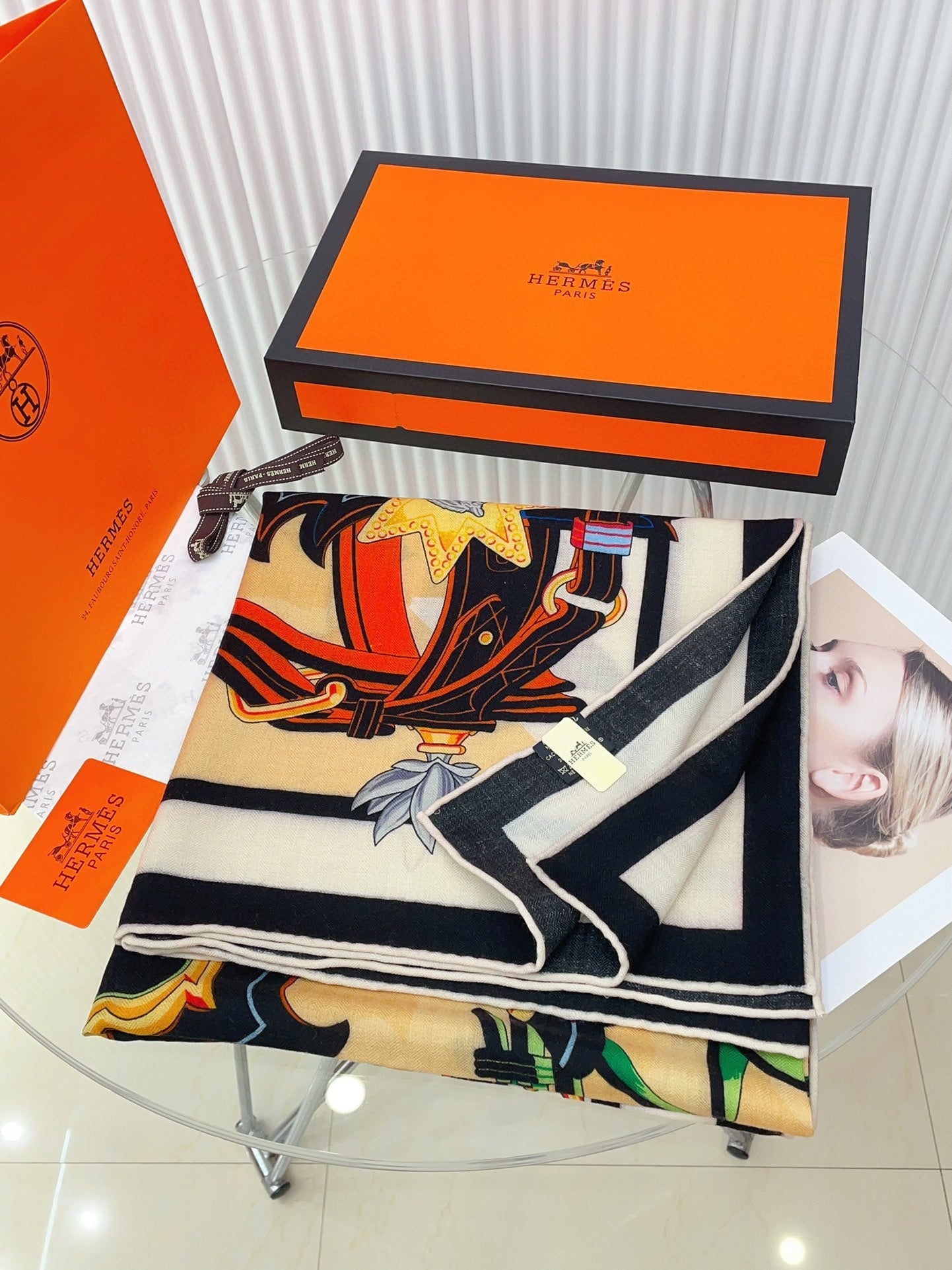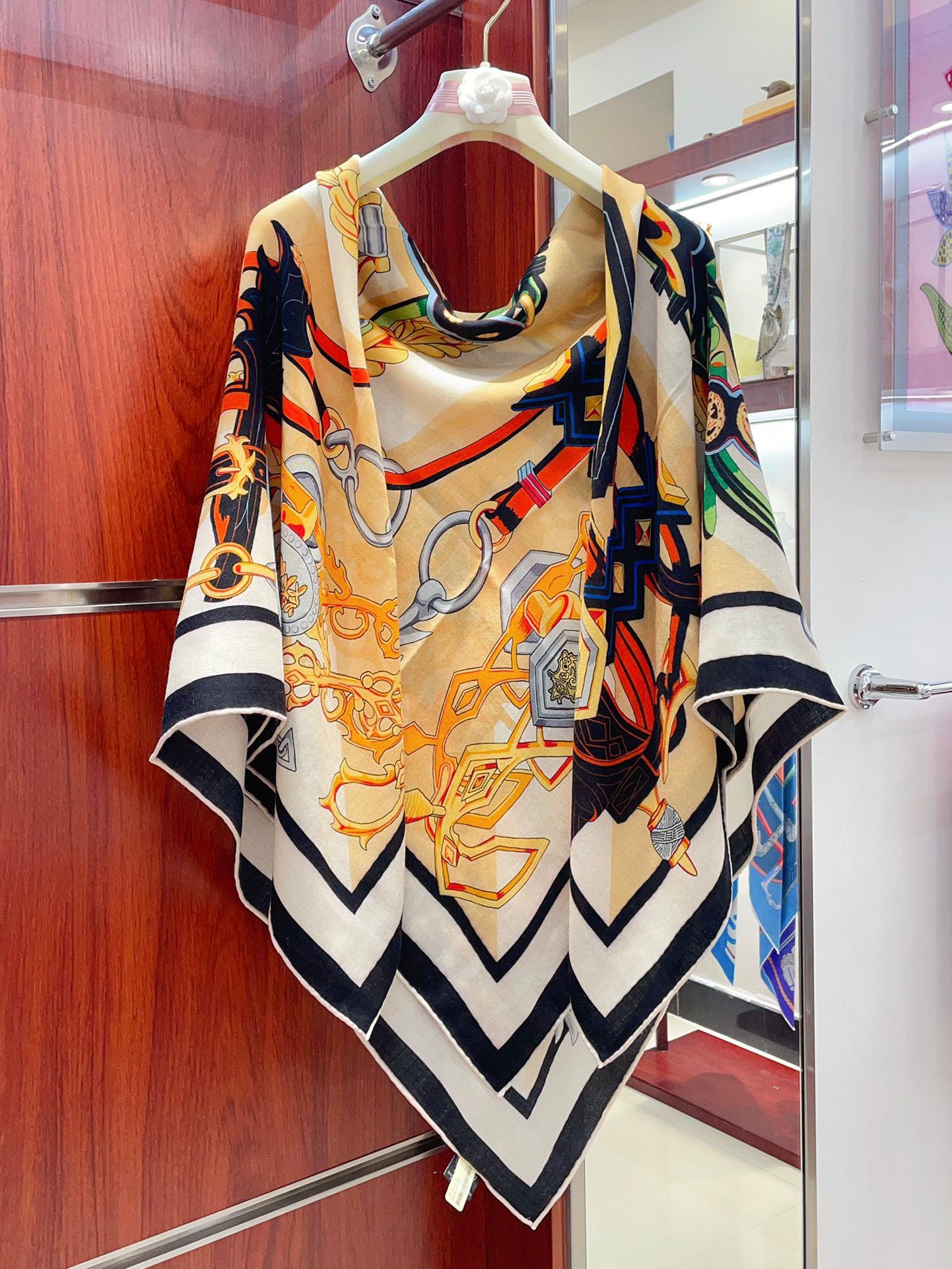 Brides Et Destin Scarf 140 CM In Light Yellow Colorful Cashmere Silk 375373