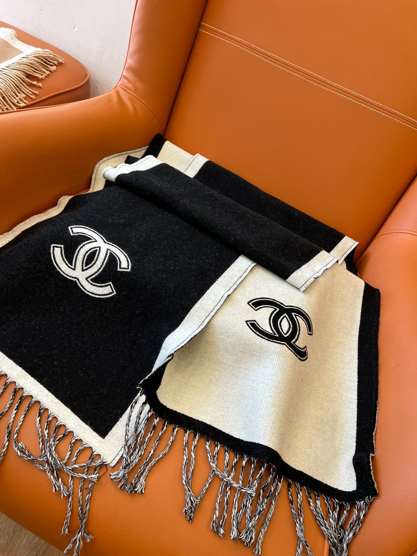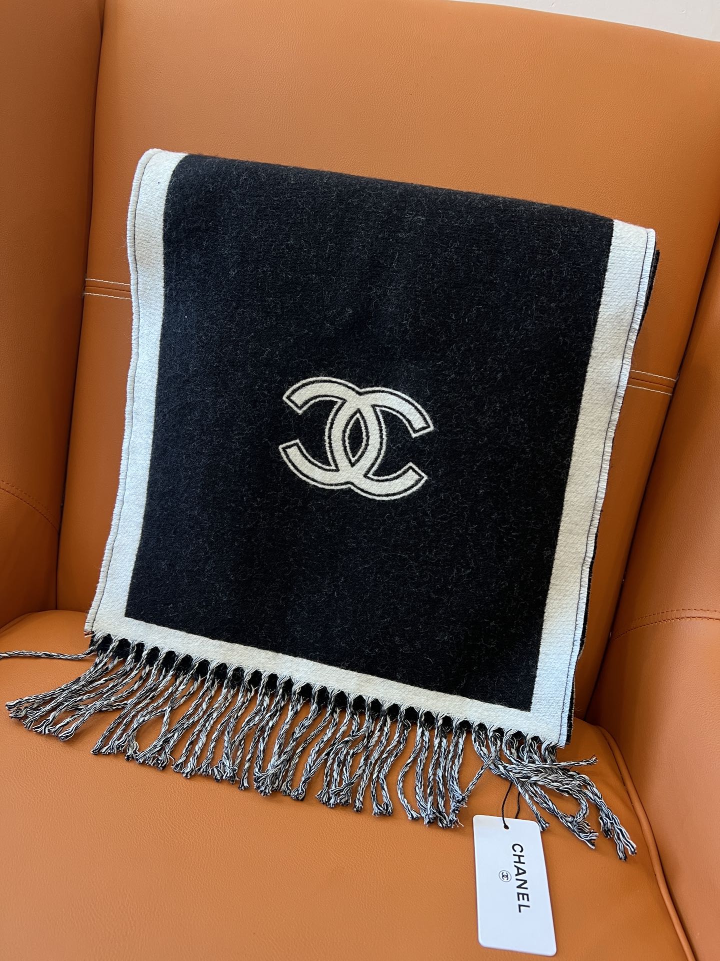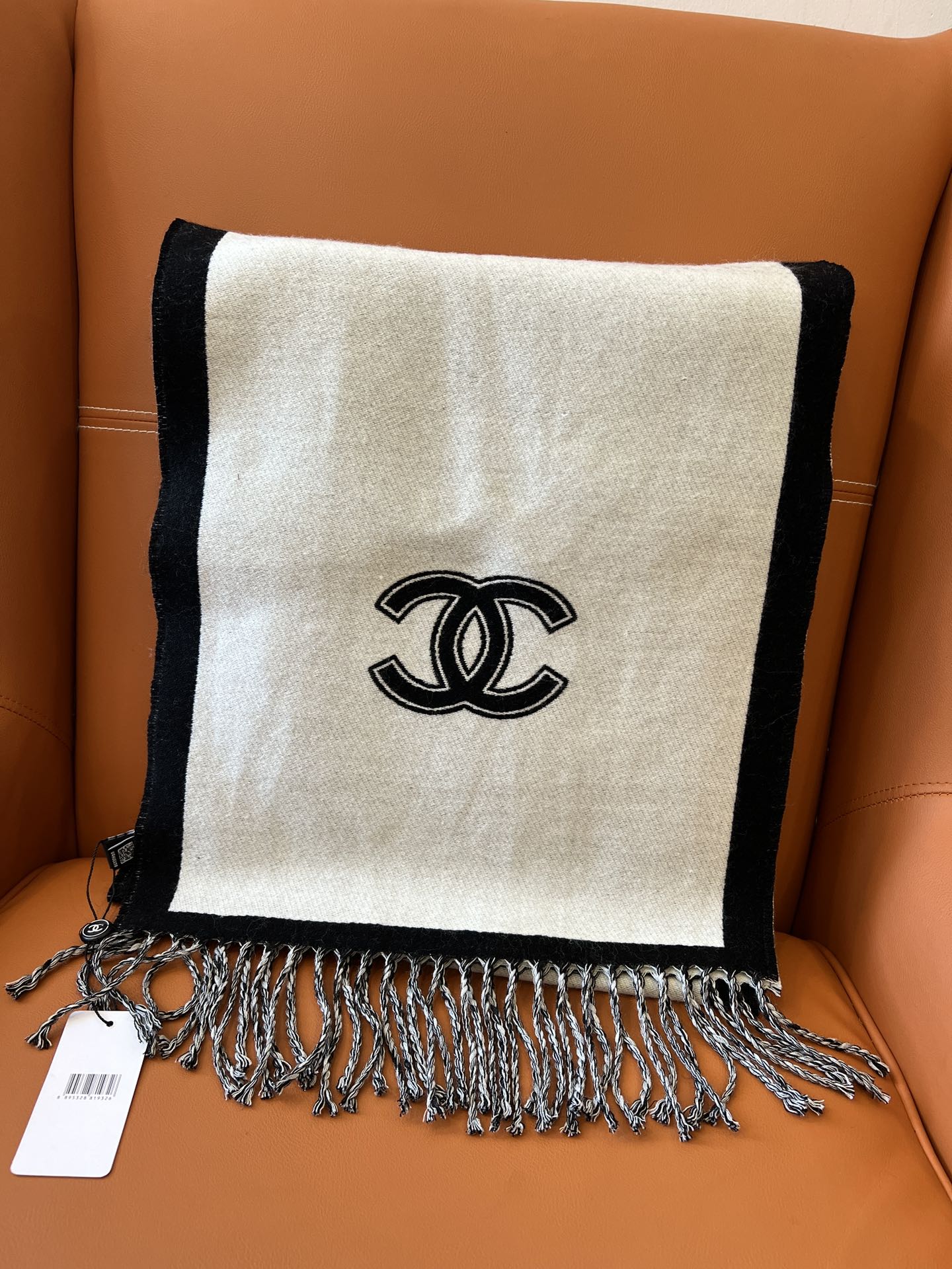 CC Scarf 184 CM In White Mix Black Wool Fleece 385533