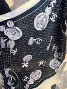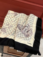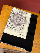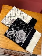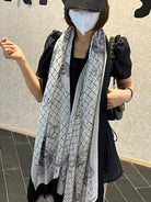 CC Scarf 200 CM In White Black Cashmere Silk 255990