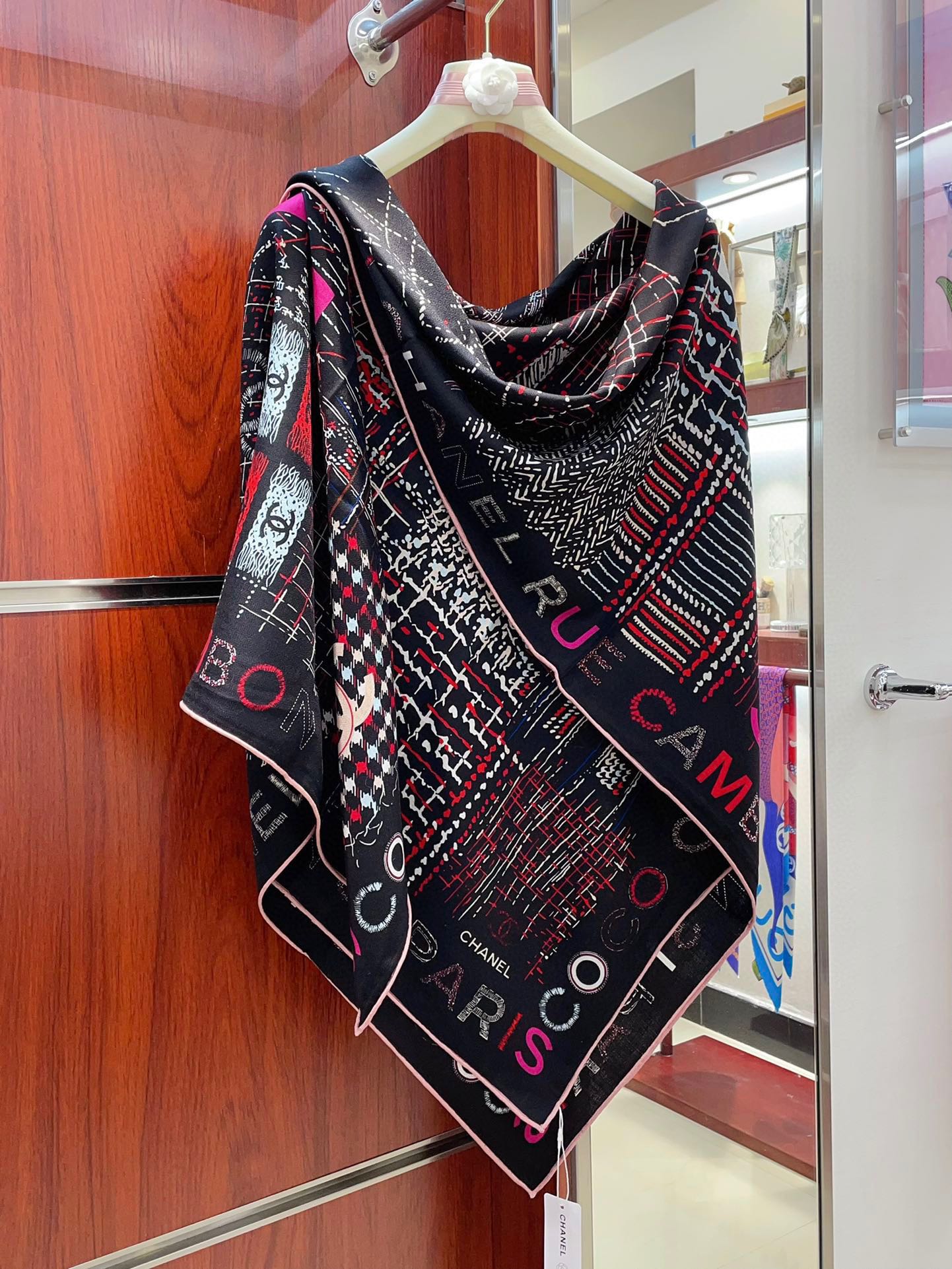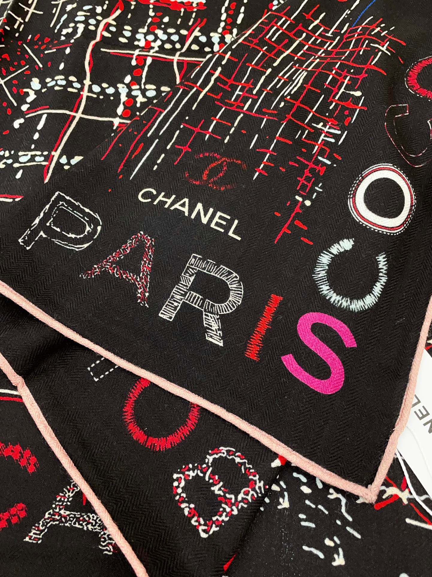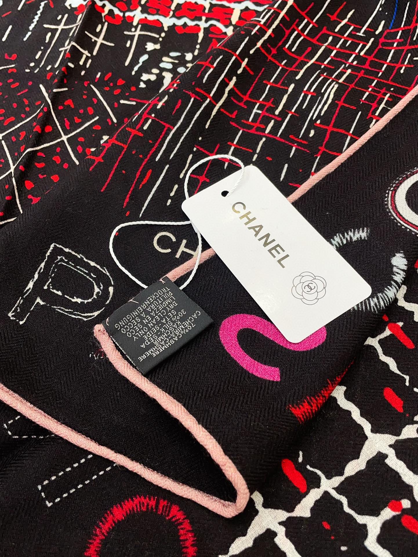 CC Square Scarf 140 CM In Black Colorful Cashmere And Silk 411594