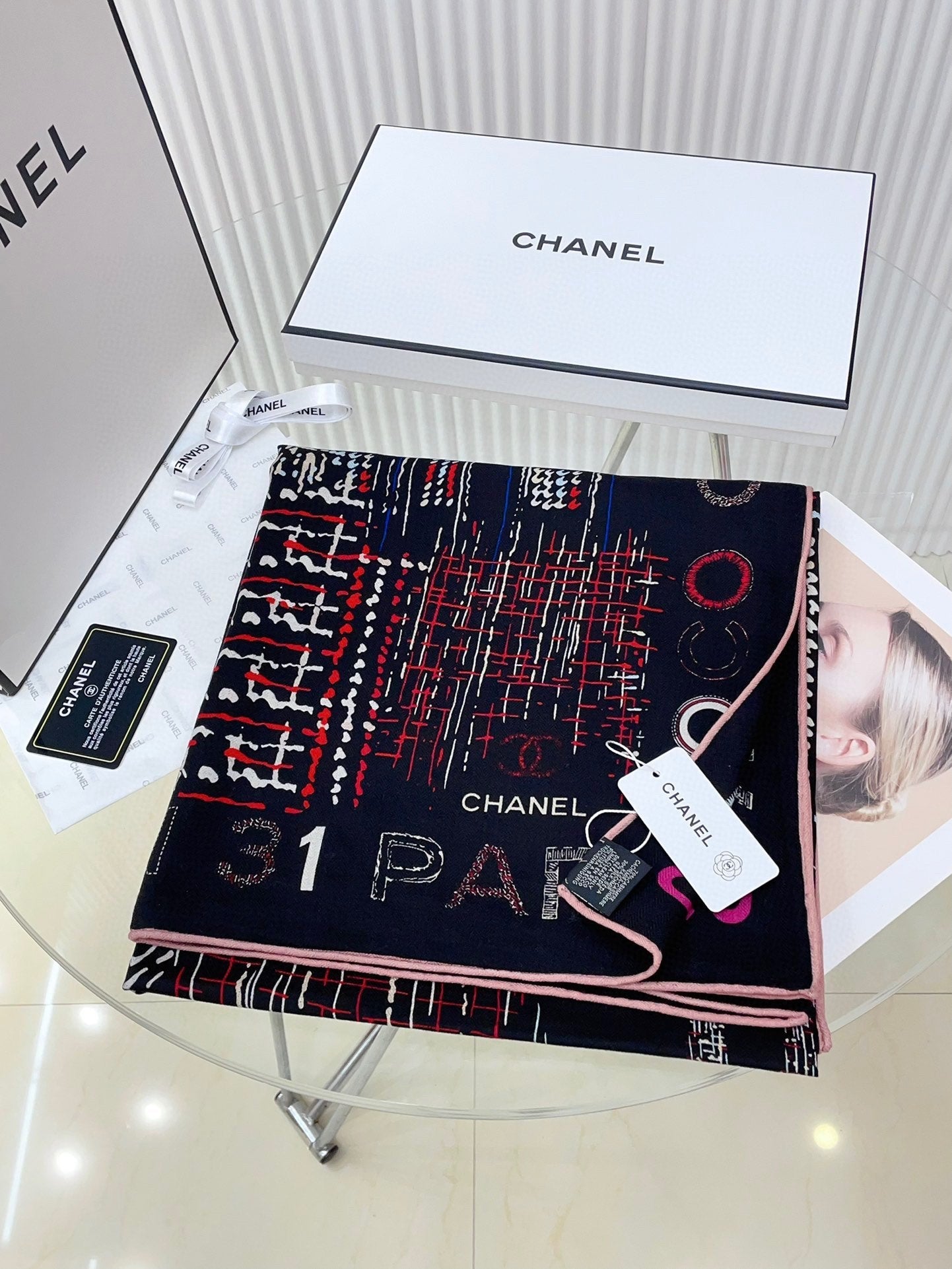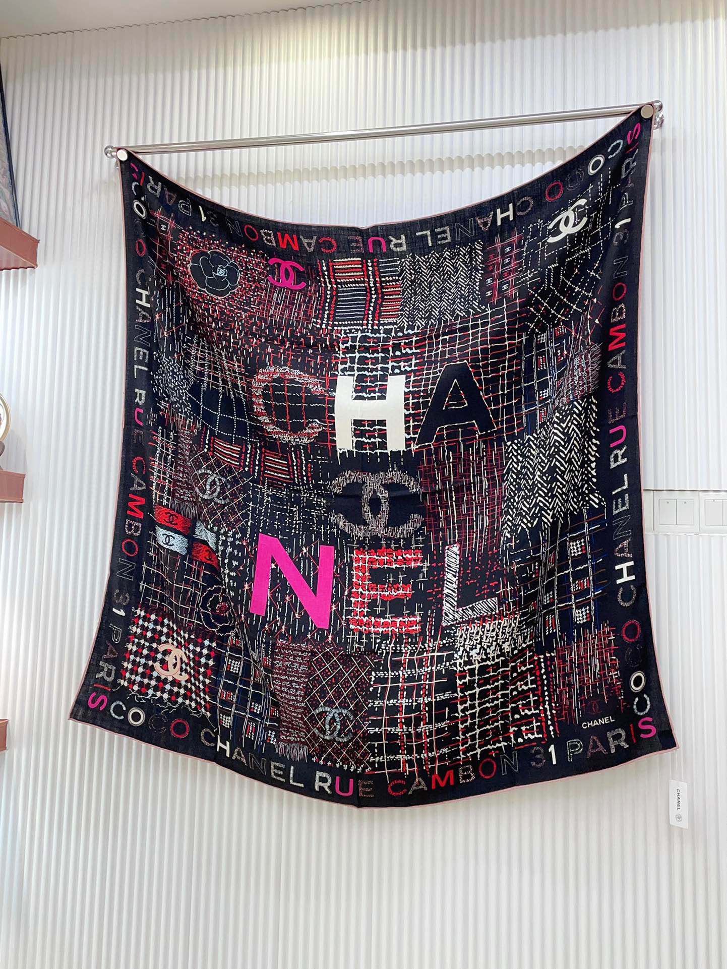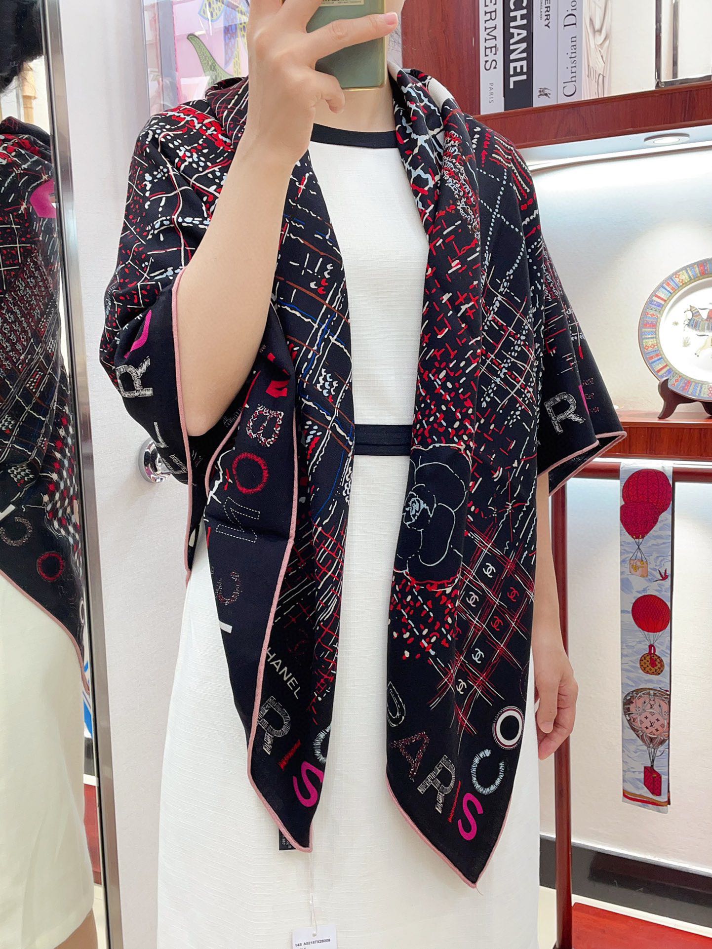 CC Square Scarf 140 CM In Black Colorful Cashmere And Silk 411594