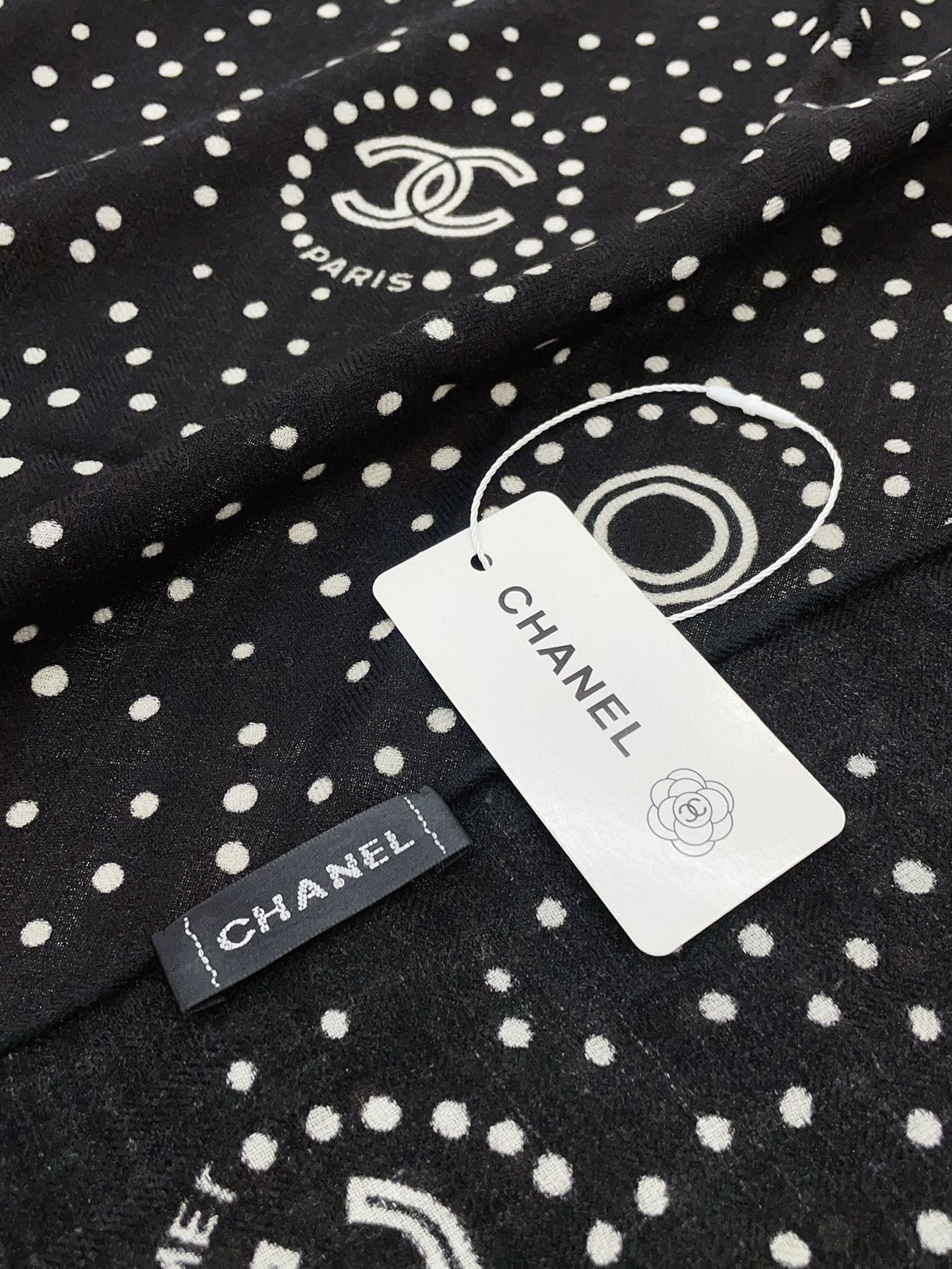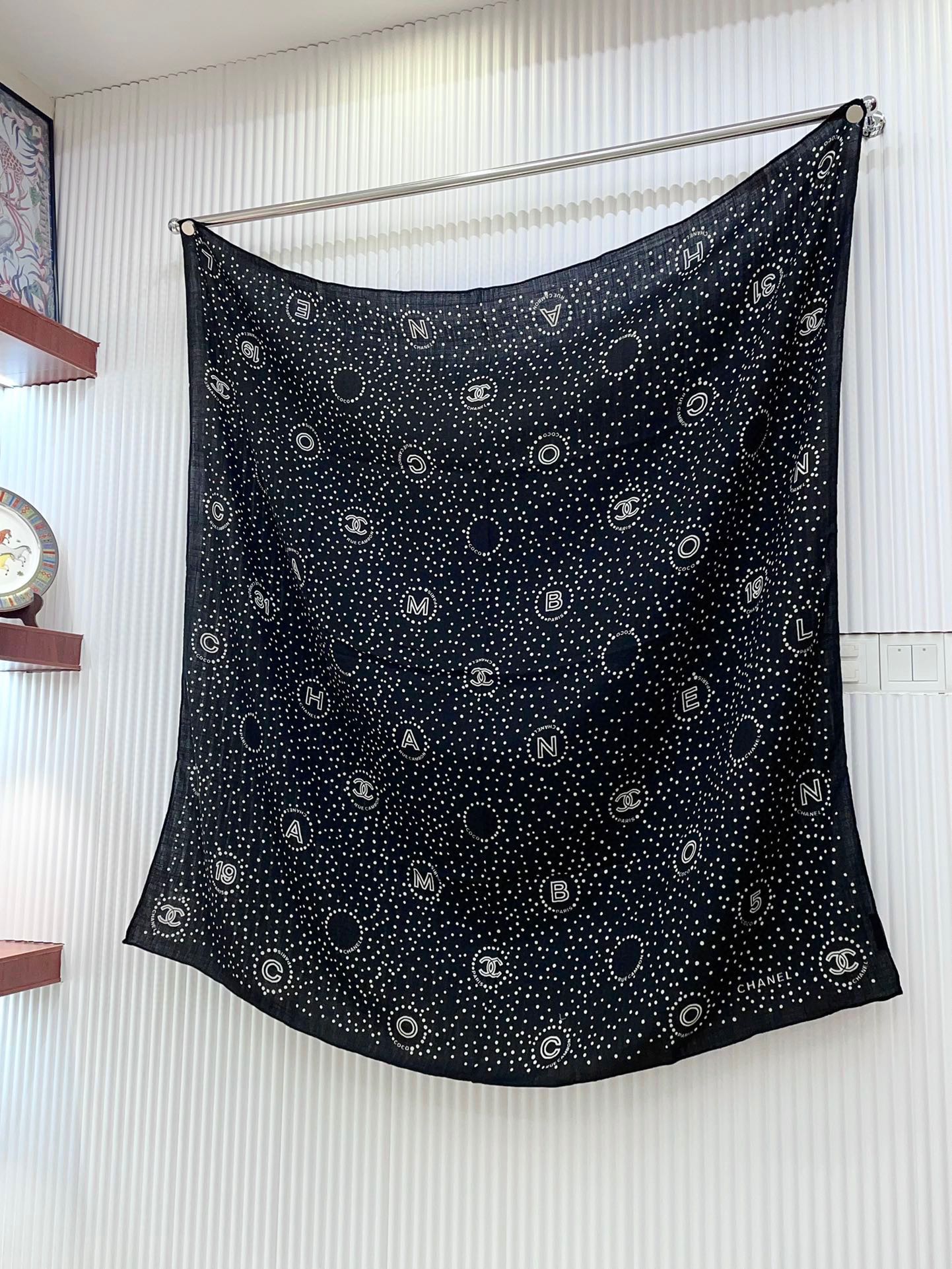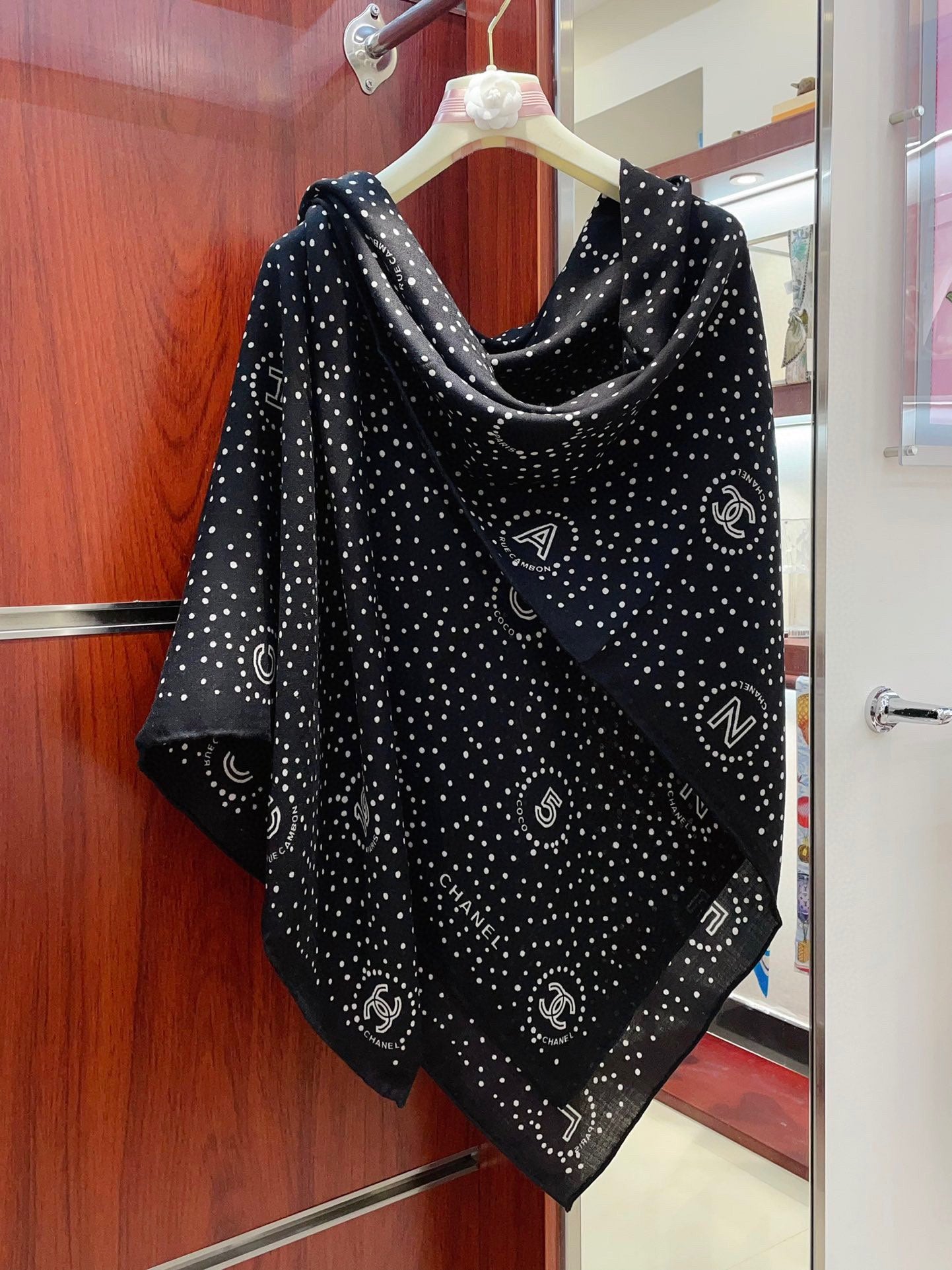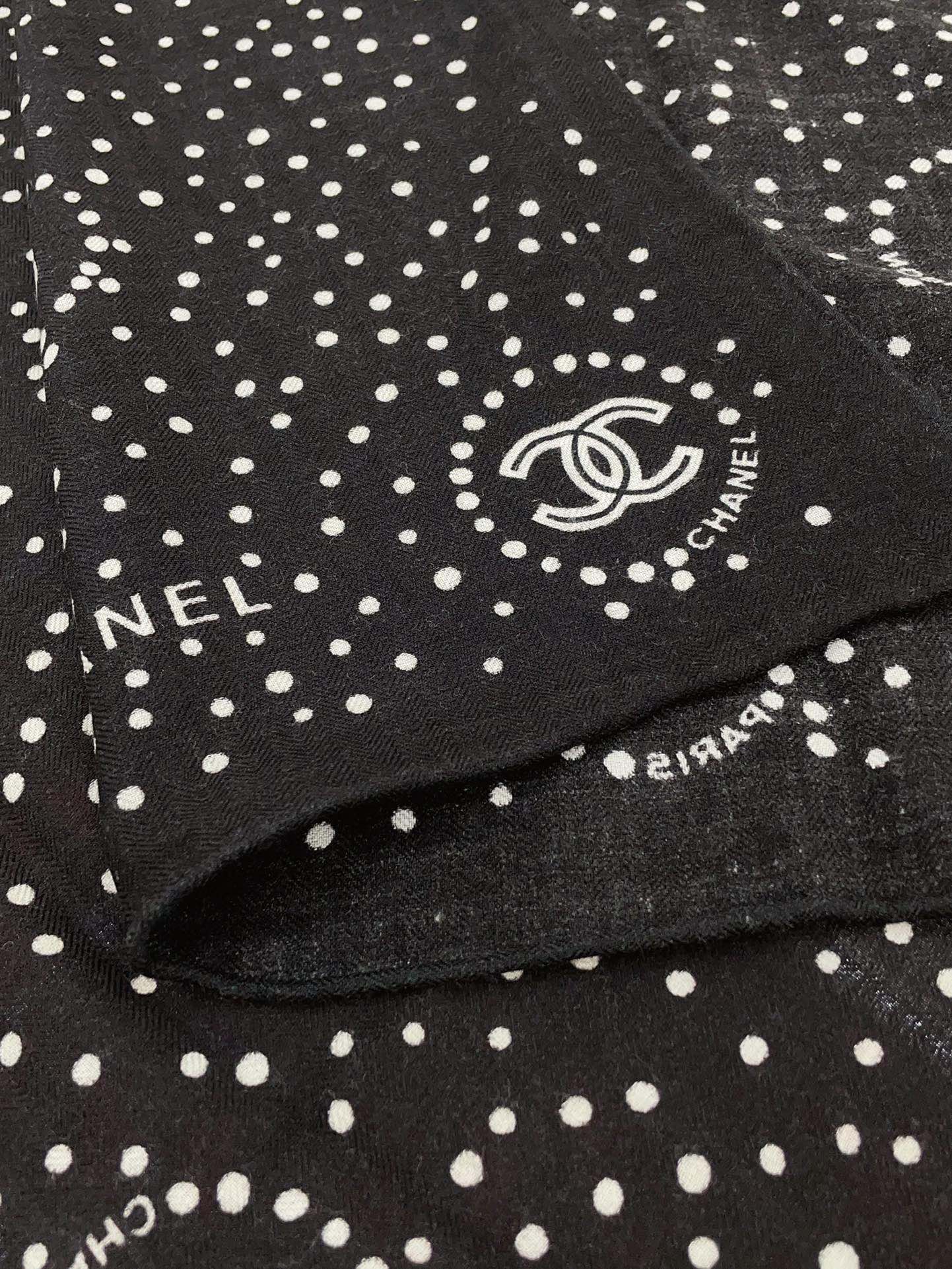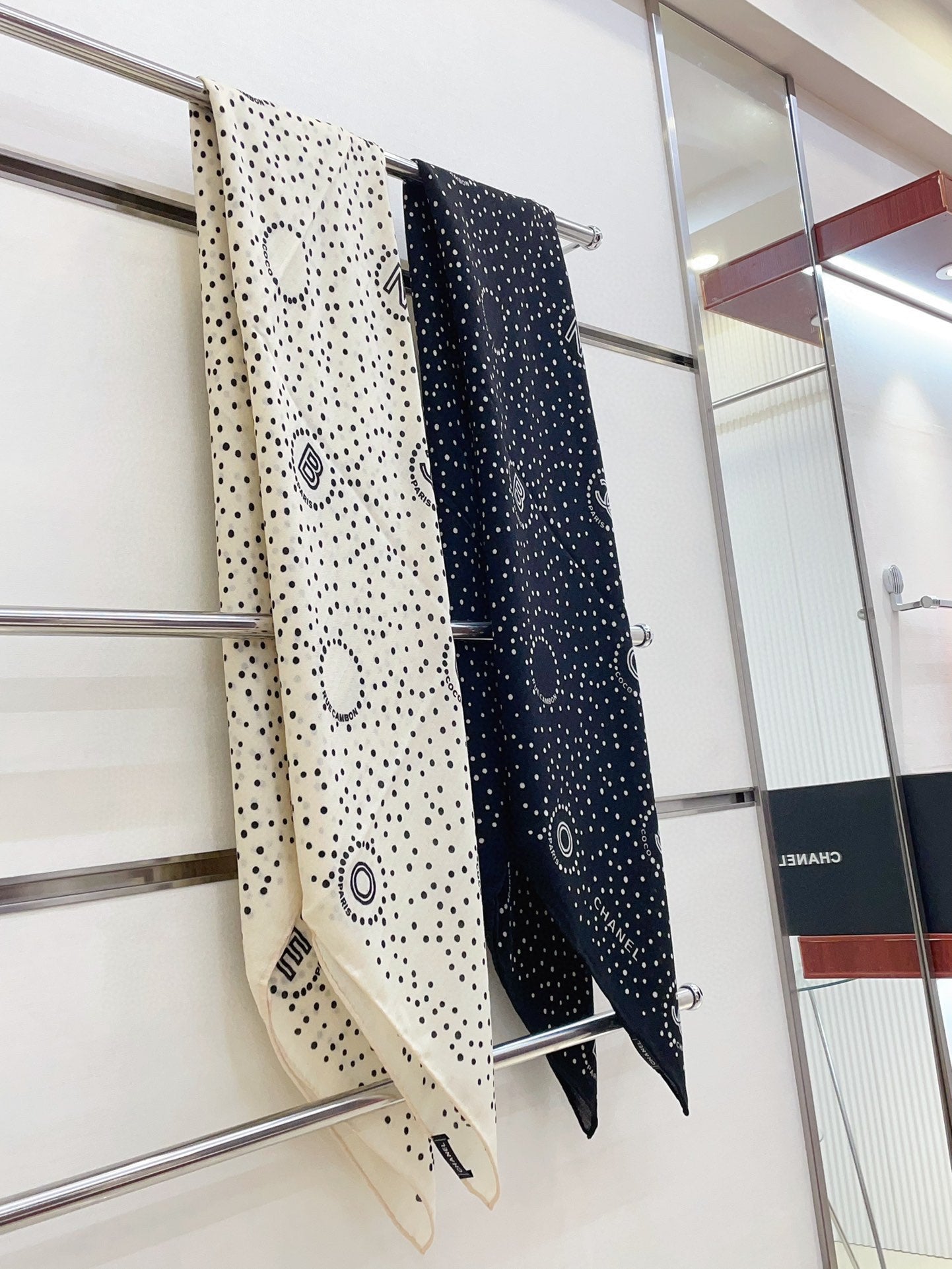 CC Square Scarf 140 CM In Black White Polka Dot Cashmere Silk 337147