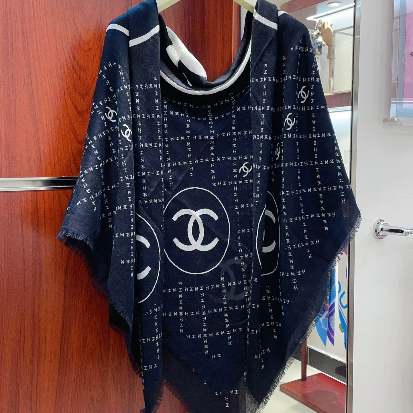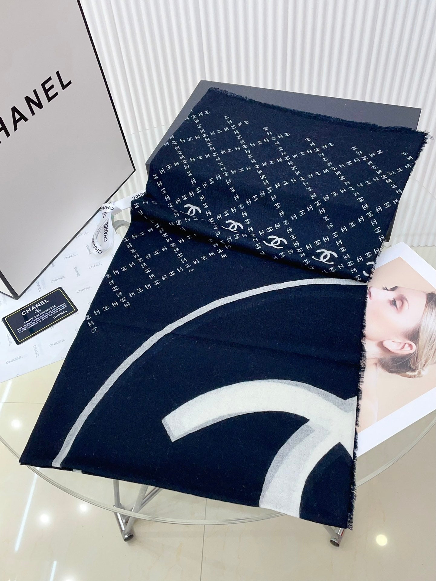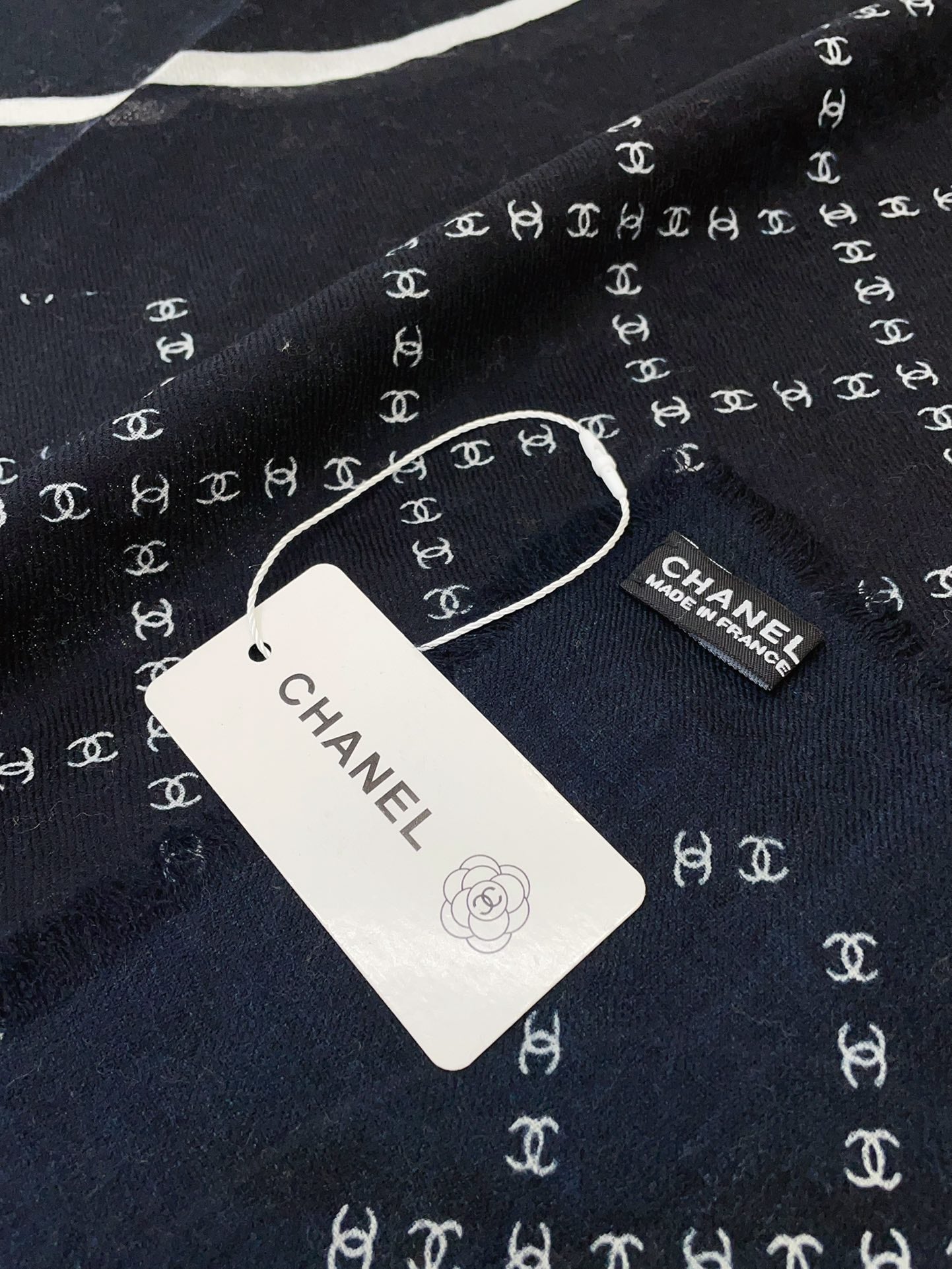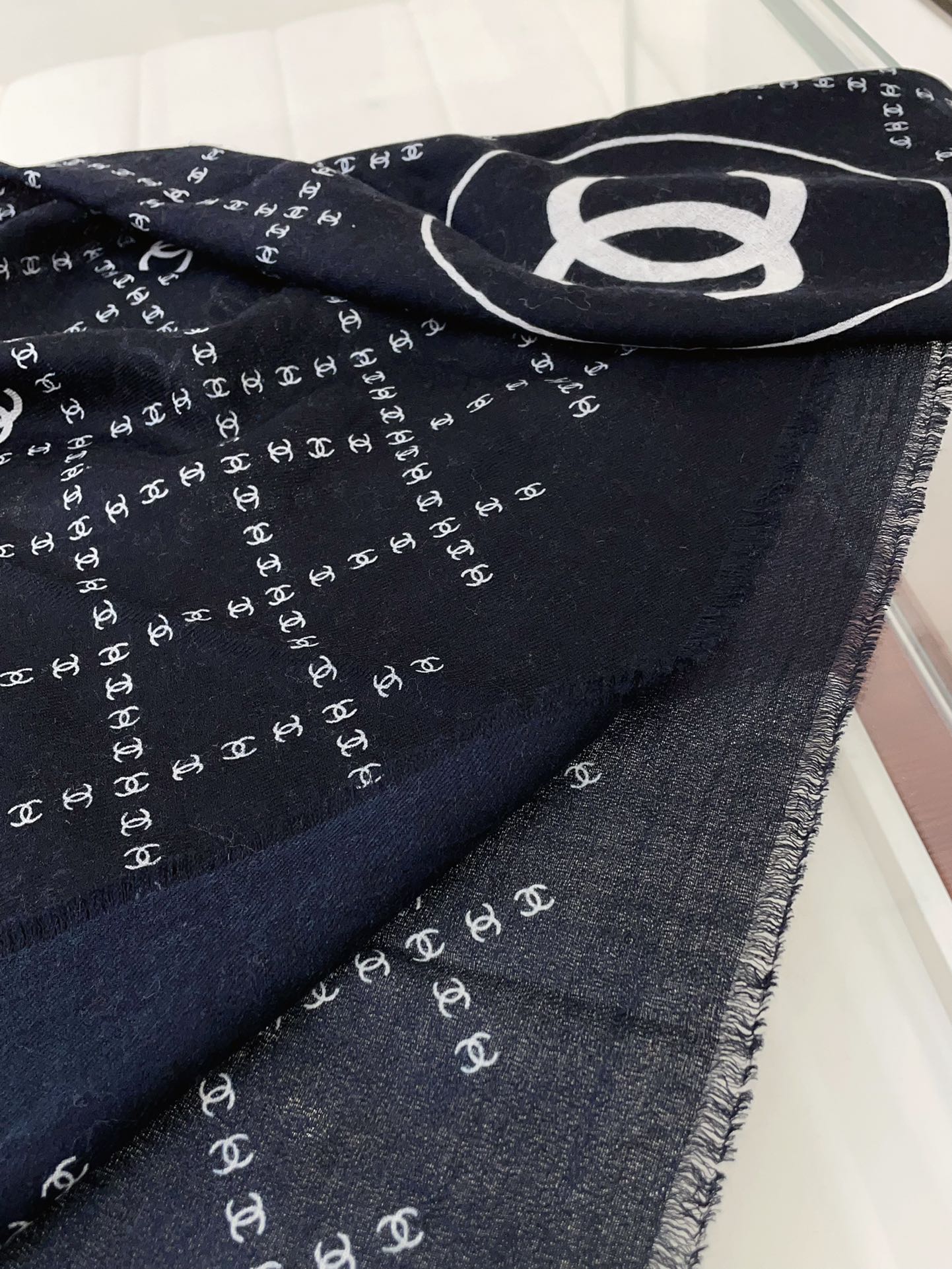 CC Square Scarf 140 CM In Black With White Logo Cashmere 300443
