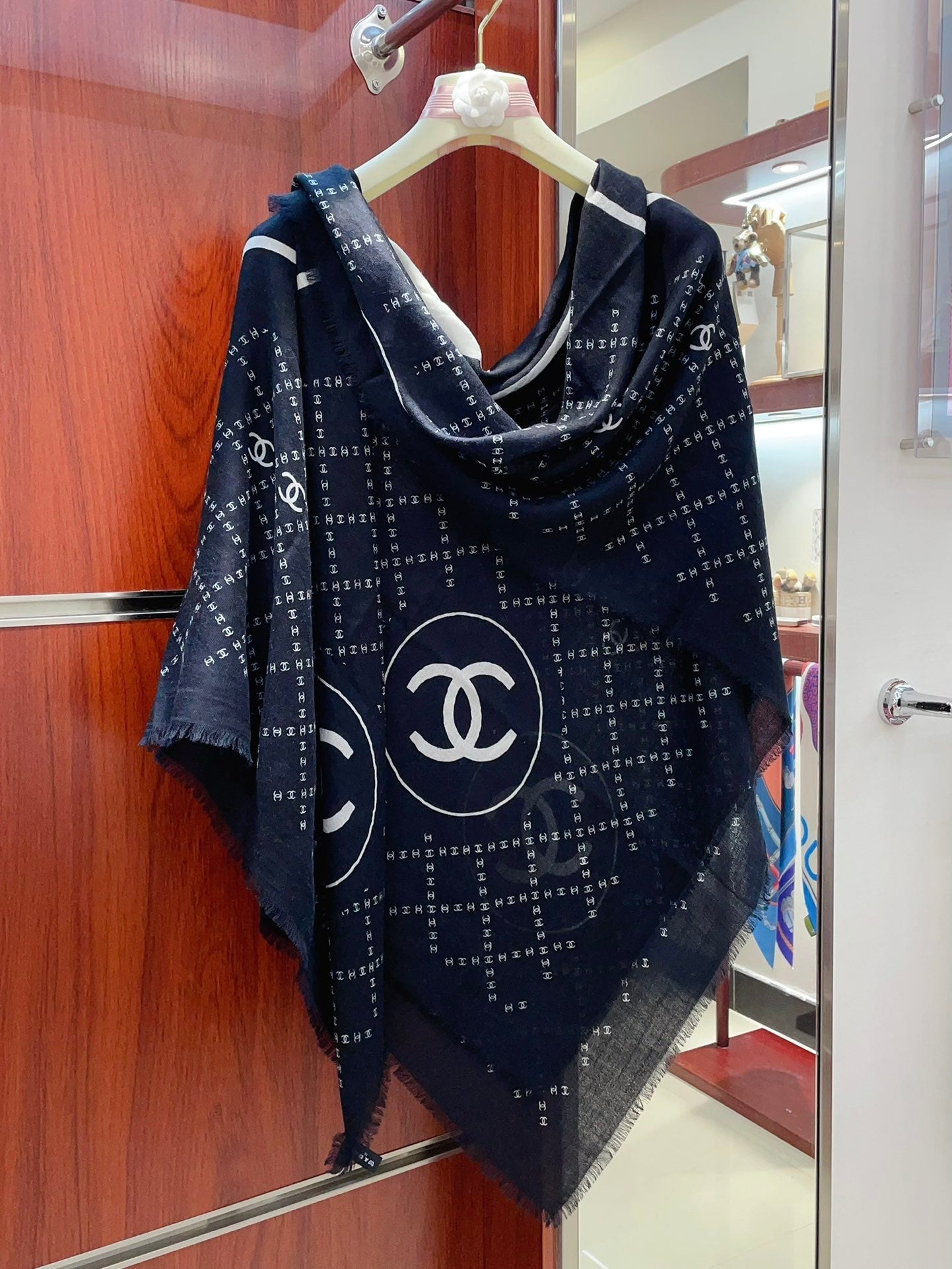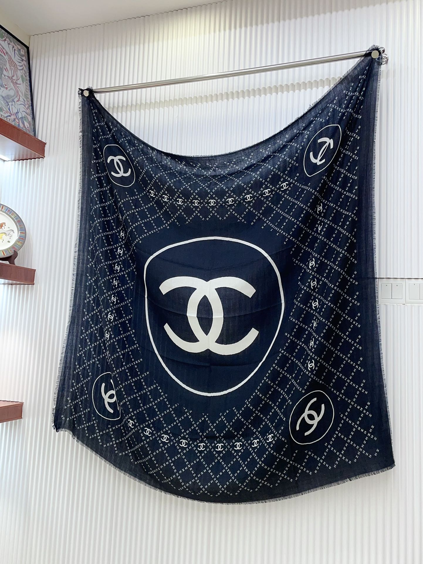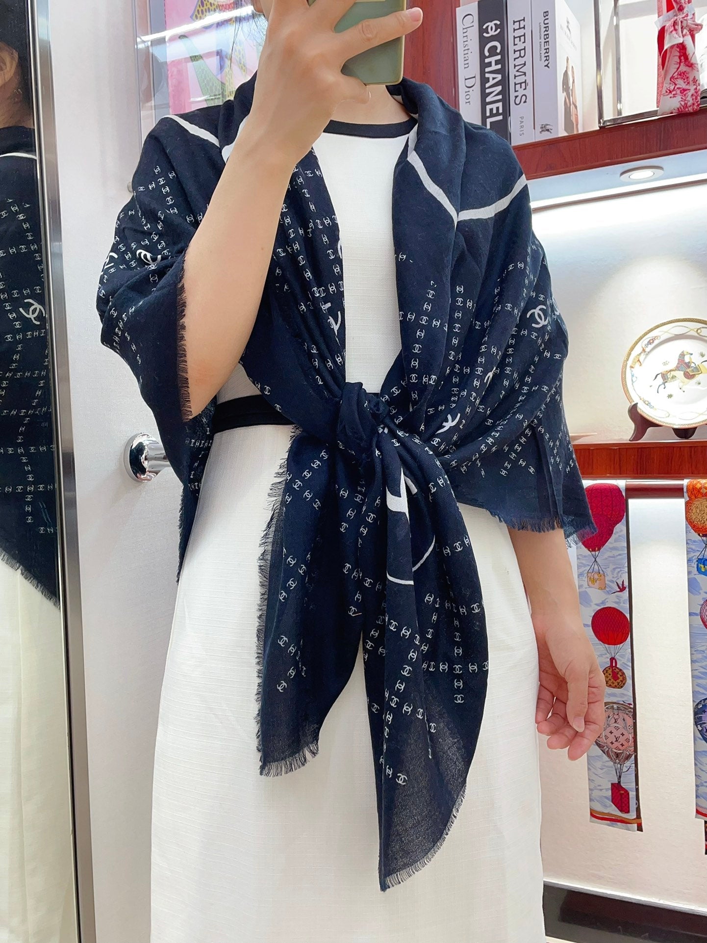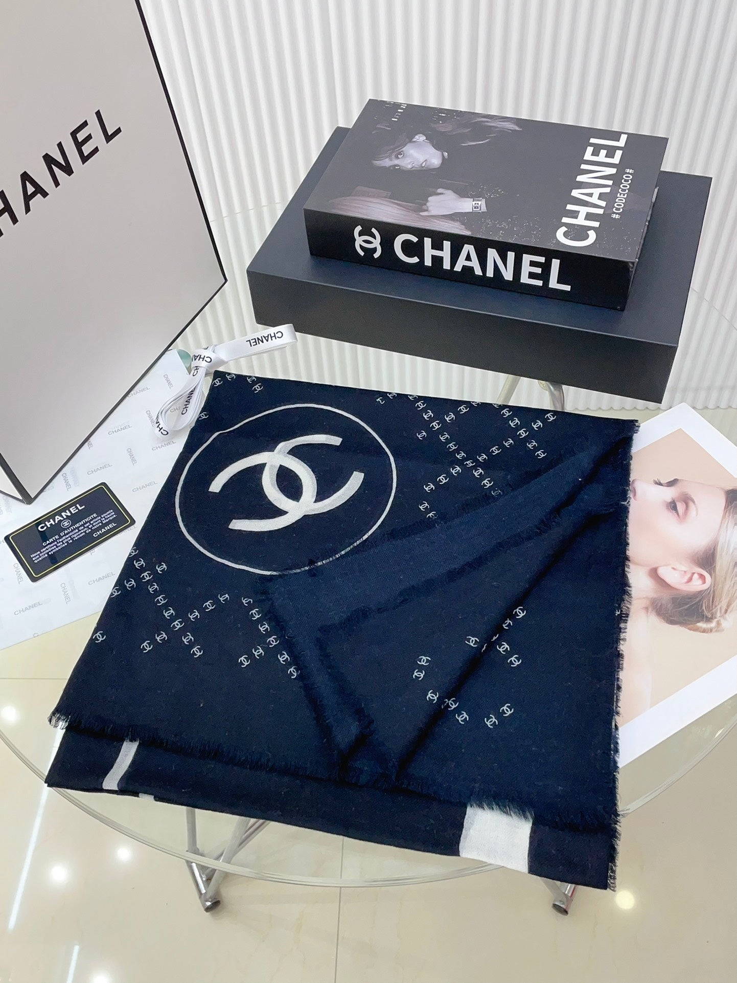 CC Square Scarf 140 CM In Black With White Logo Cashmere 300443