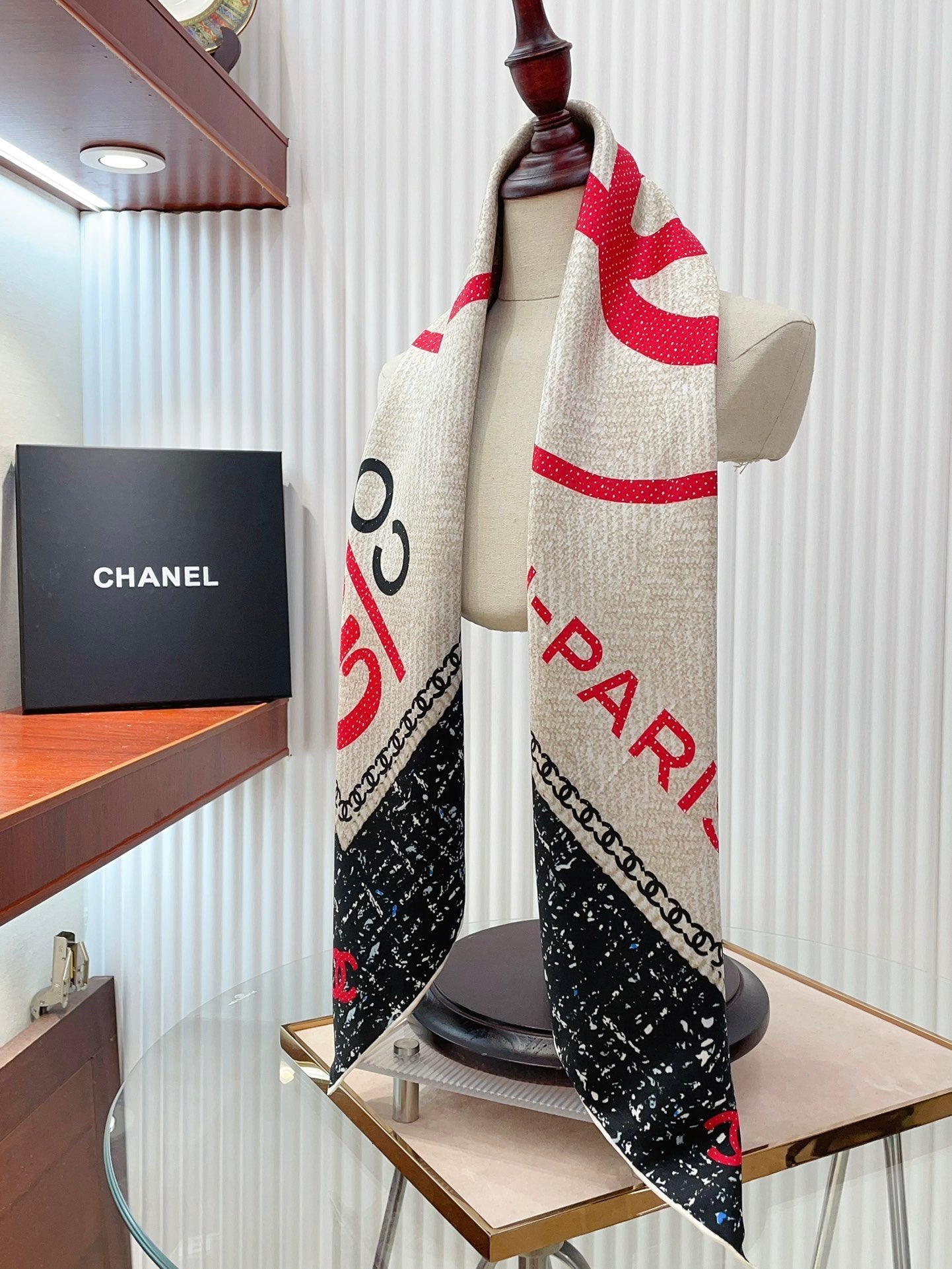 CC Square Scarf 90 CM In Black Mix Light Beige Red Cashmere Silk 172077
