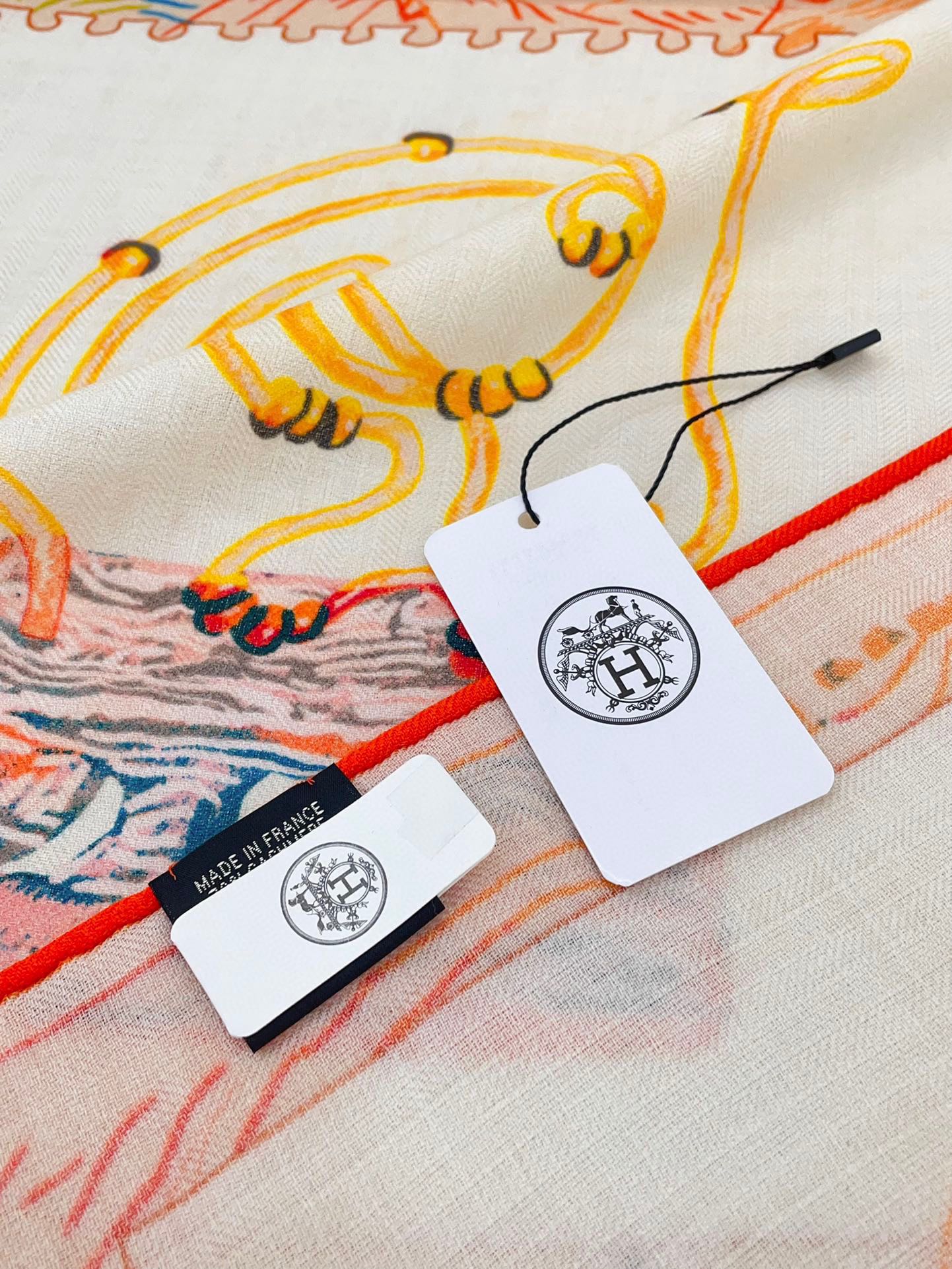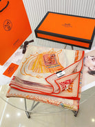 Chevaloscope Scarf 140 CM In Yellow Orange Colorful Cashmere And Silk 373659