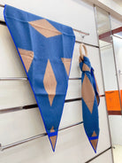 Diamond Shaped Scarf 186 CM In Blue Mix Dark Beige Cashmere 373673