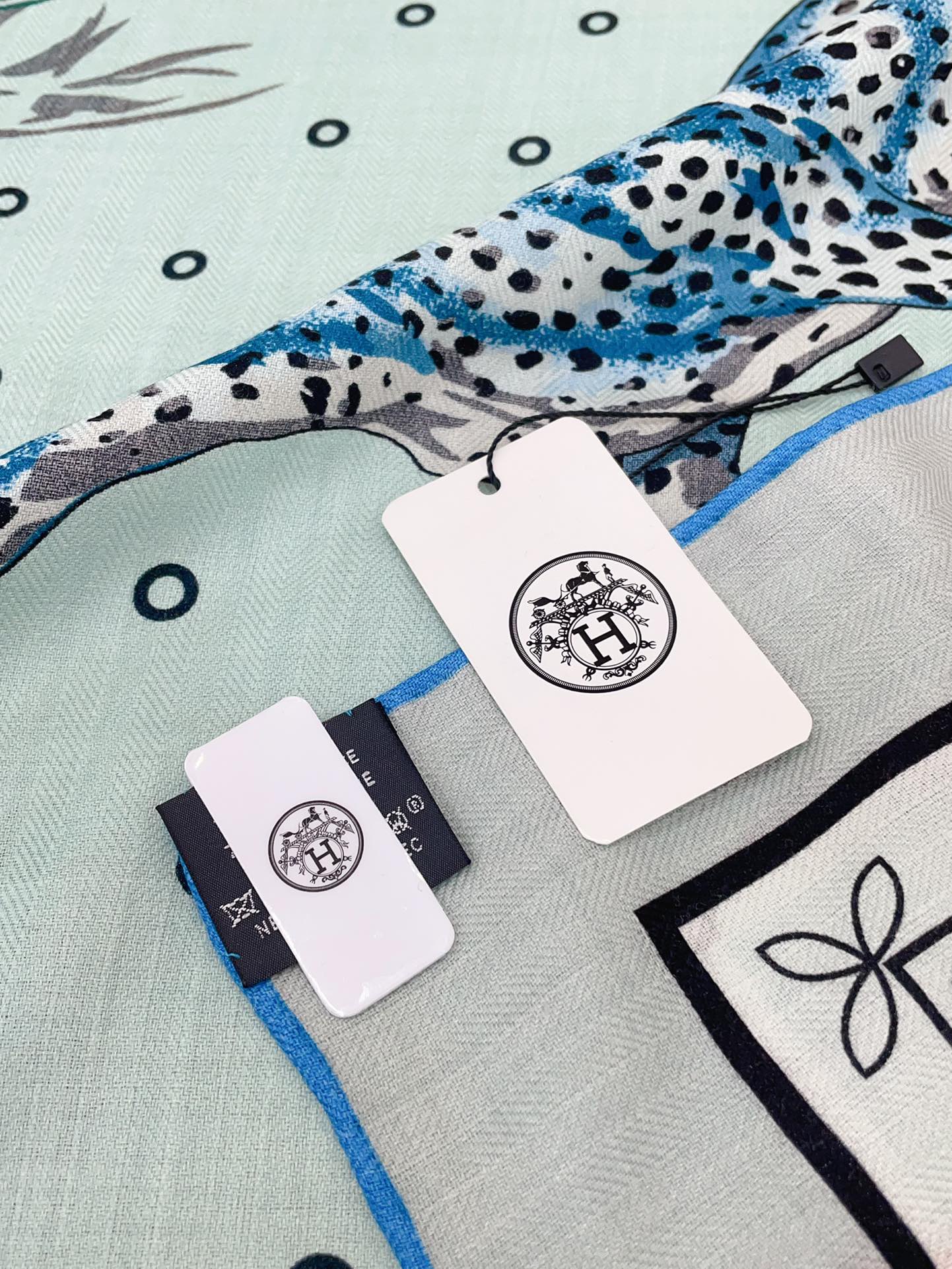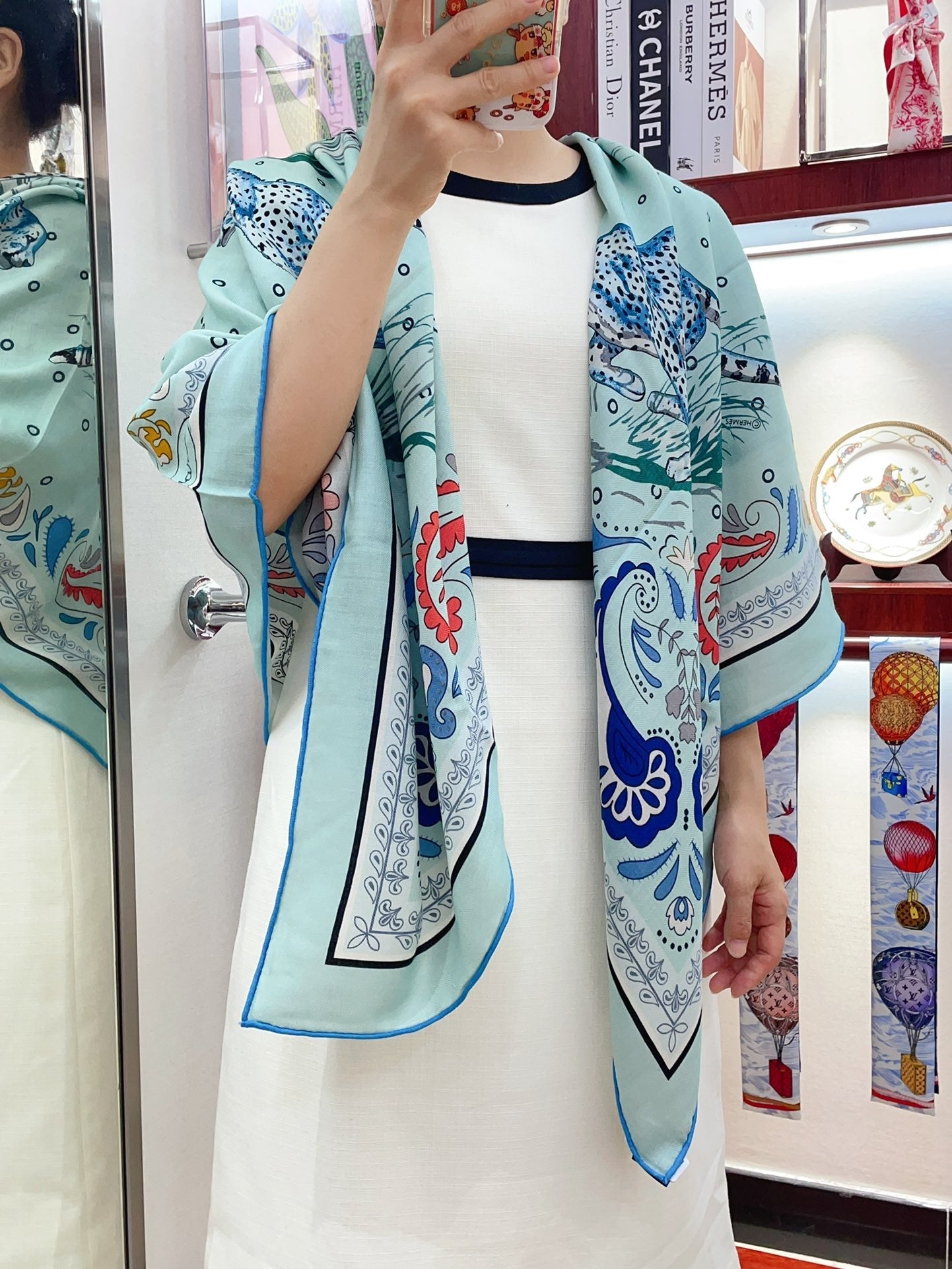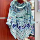 Guepards Bandana Double Face Scarf 140 CM In Light Turquoise Colorful Cashmere And Silk 334191