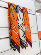 HM Lettres Equestre Scarf 140 CM In White Colorful Cashmere And Silk 359399