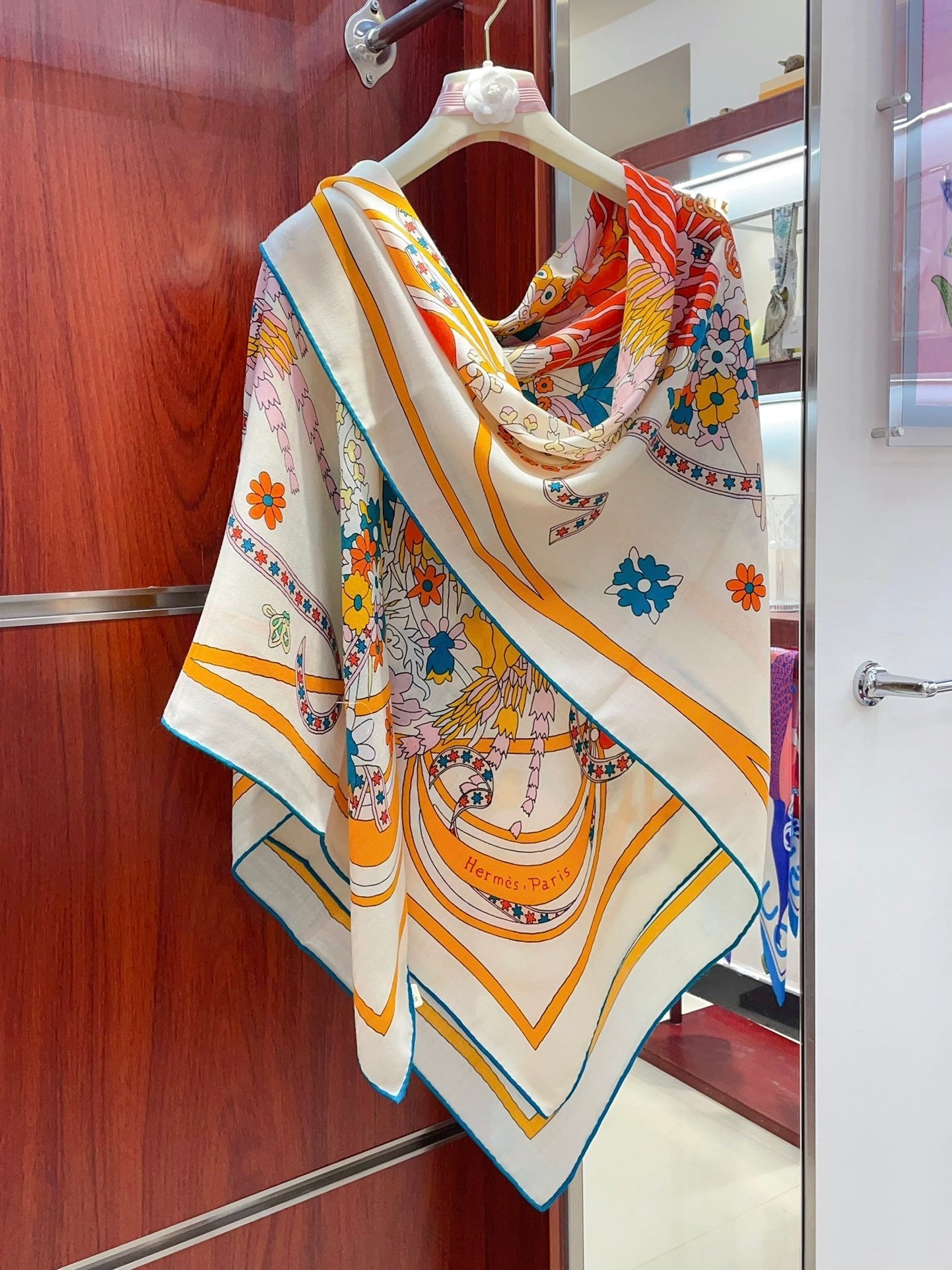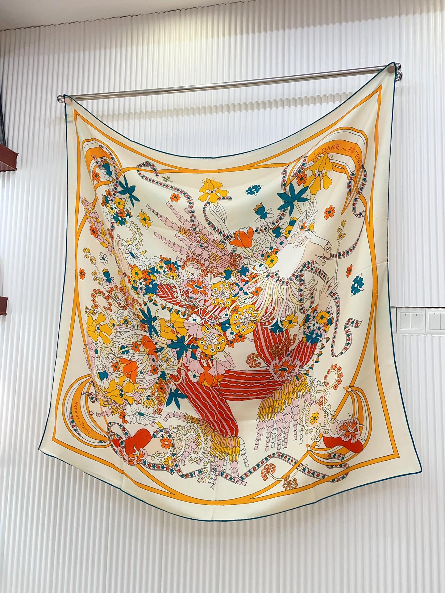 La Danse Du Printemps Scarf 140 In Yellow Colorful Cashmere And Silk 344366