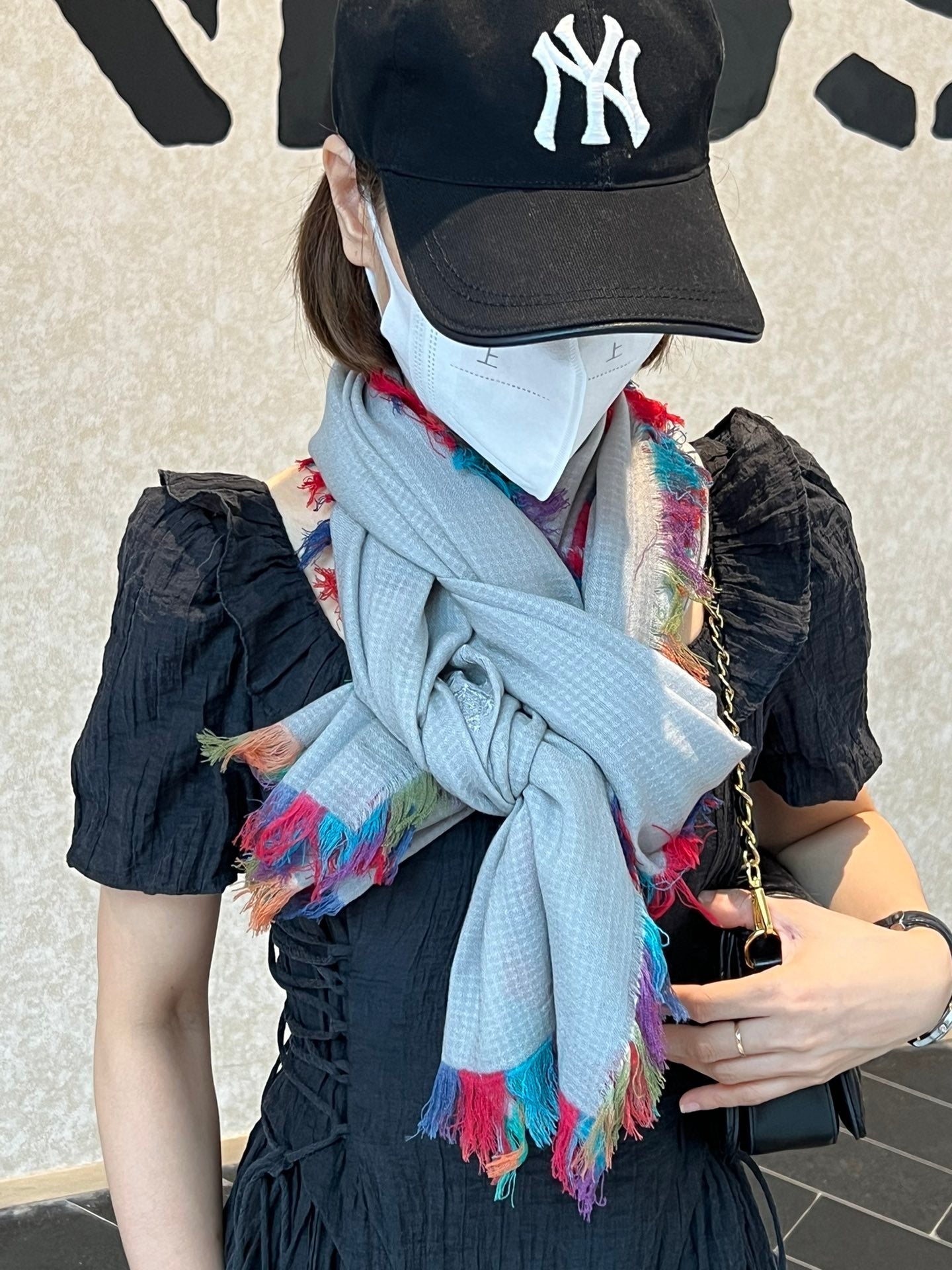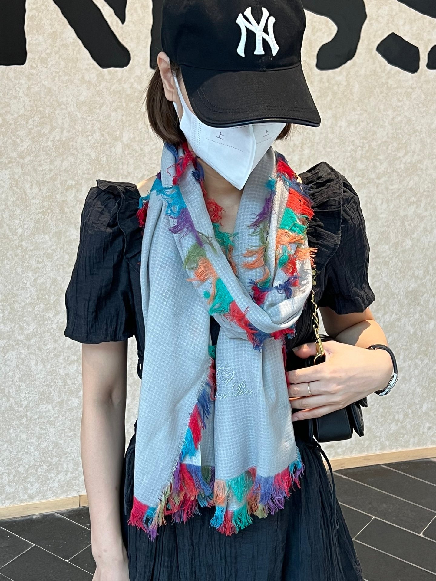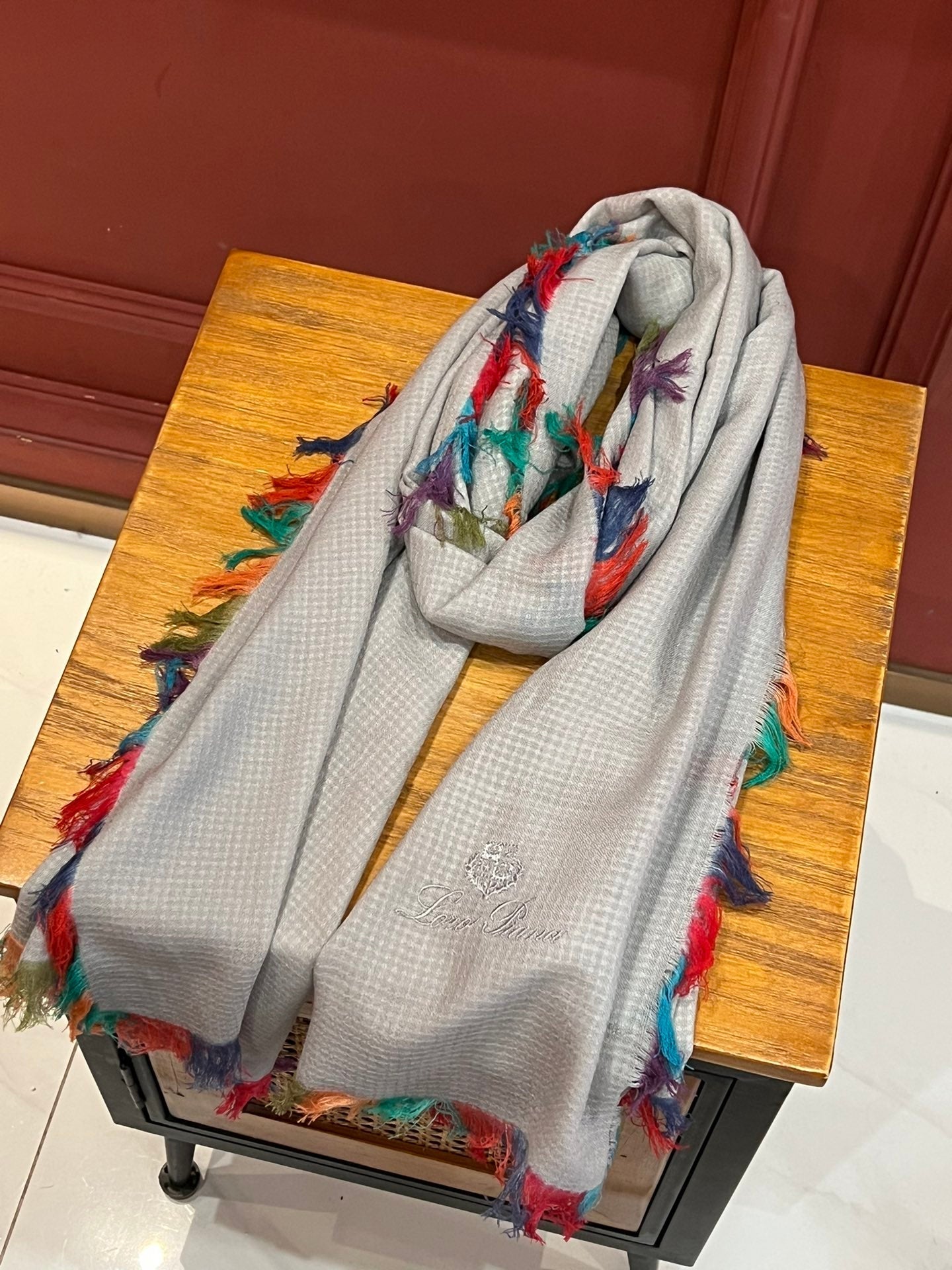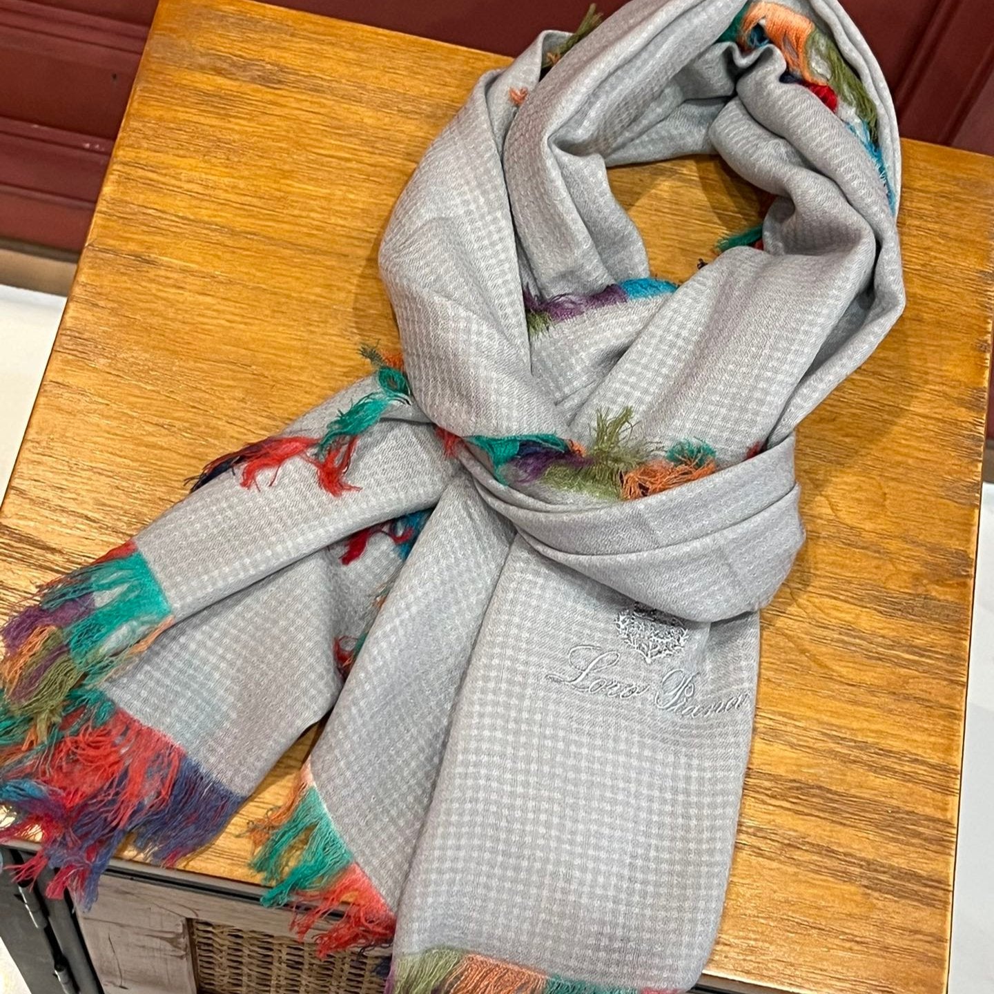 LP Scarf 190 CM In Light Grey Colorful Waffle Fabric Woven 975485