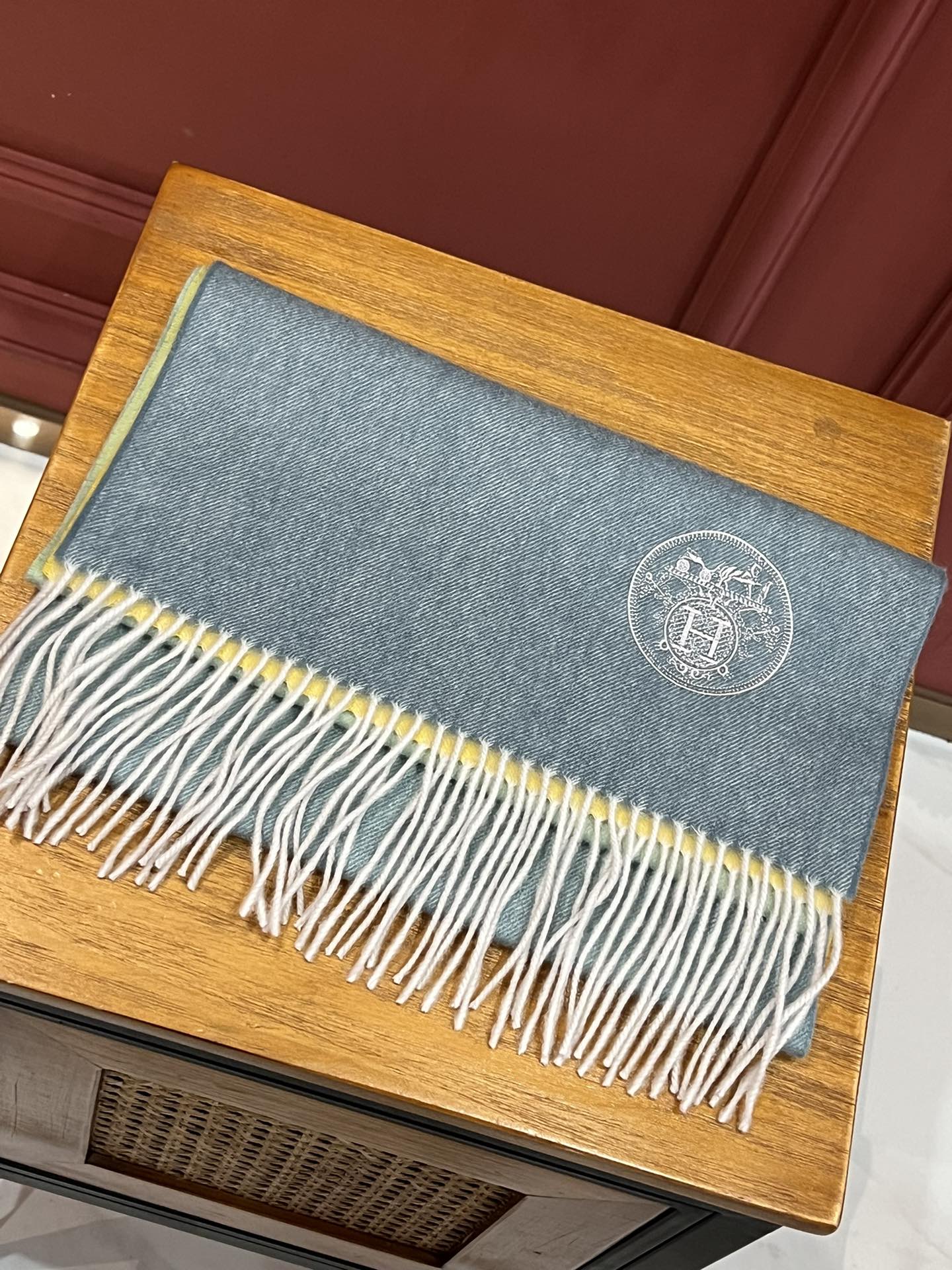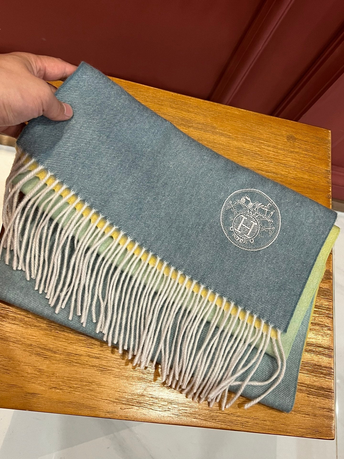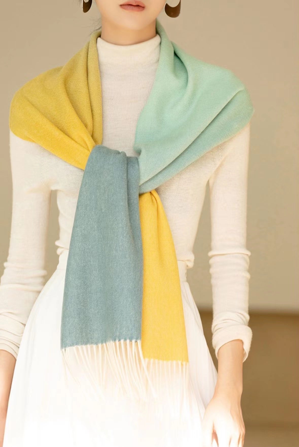 Scarf 190 CM In Blue Yellow Mix Jade Green Cashmere