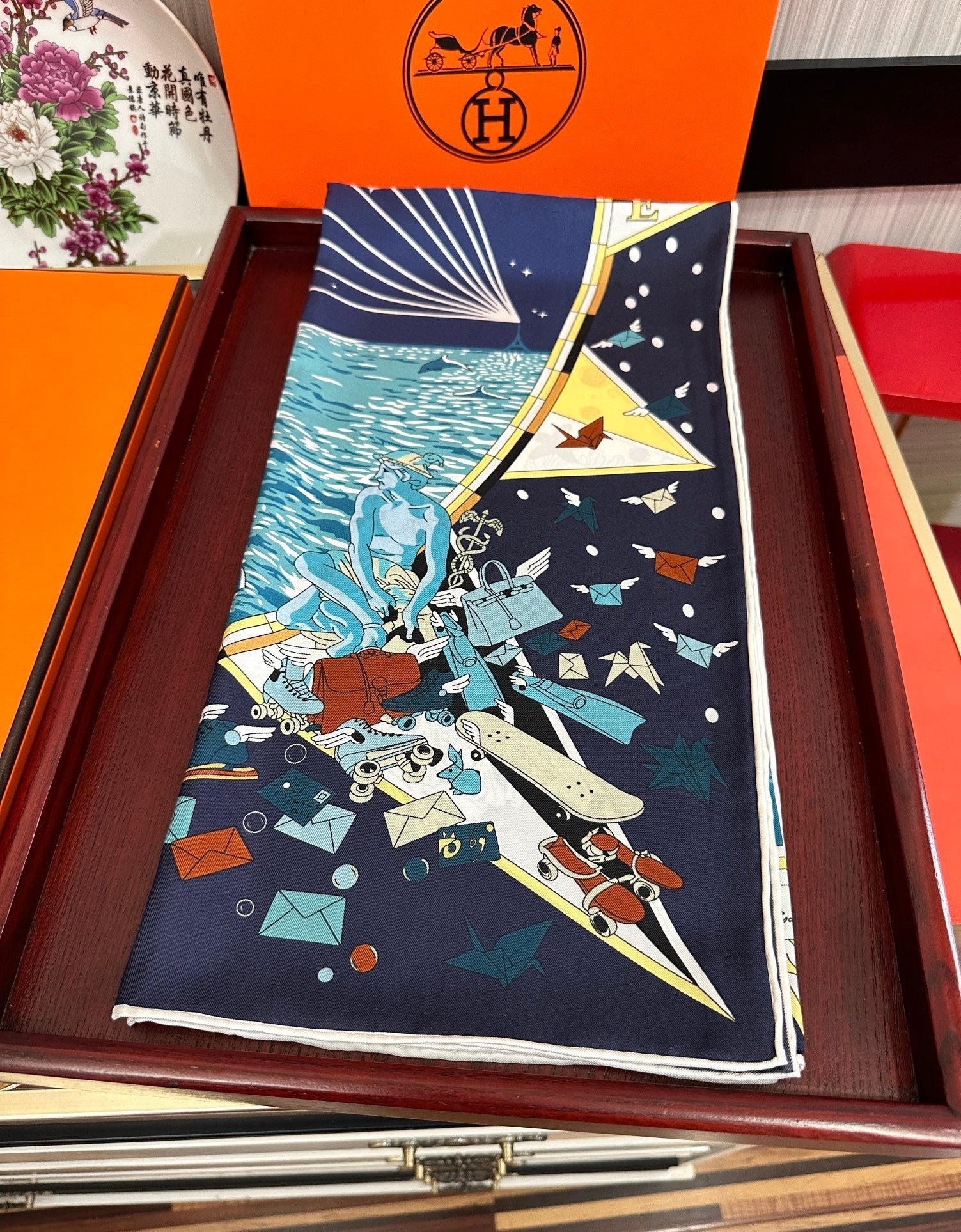 Square Scarf 90 CM Charcoal Blue Colorful Silk