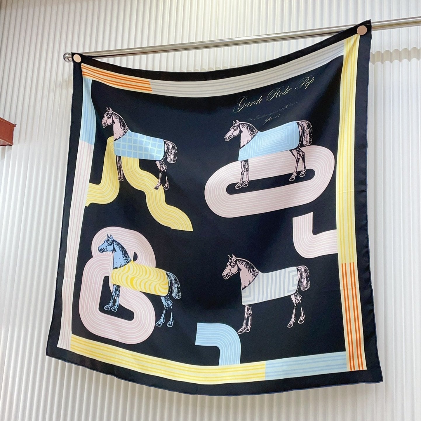 Garde-Robe Pop Detail Scarf 90 CM In Black Colorful Silk Twill 337136