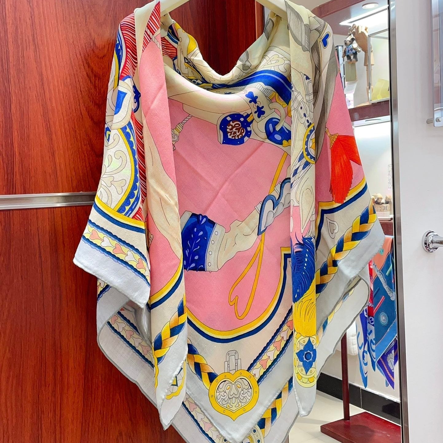 Carré Harnais De Cœur Scarf 140 CM In Red Colorful Cashmere And Silk 335858
