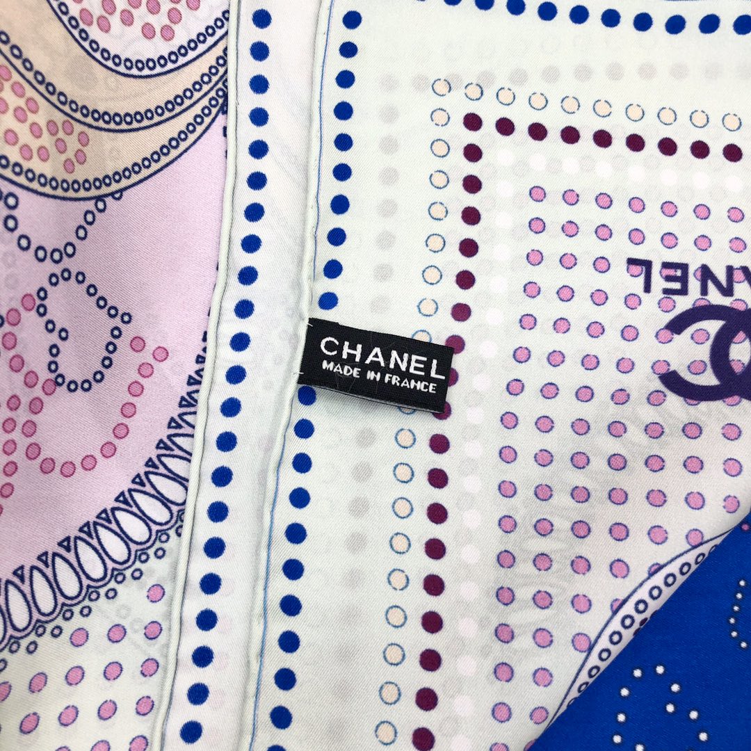 CC Square Scarf 90 CM In White Mix Blue Silk Twill 288718