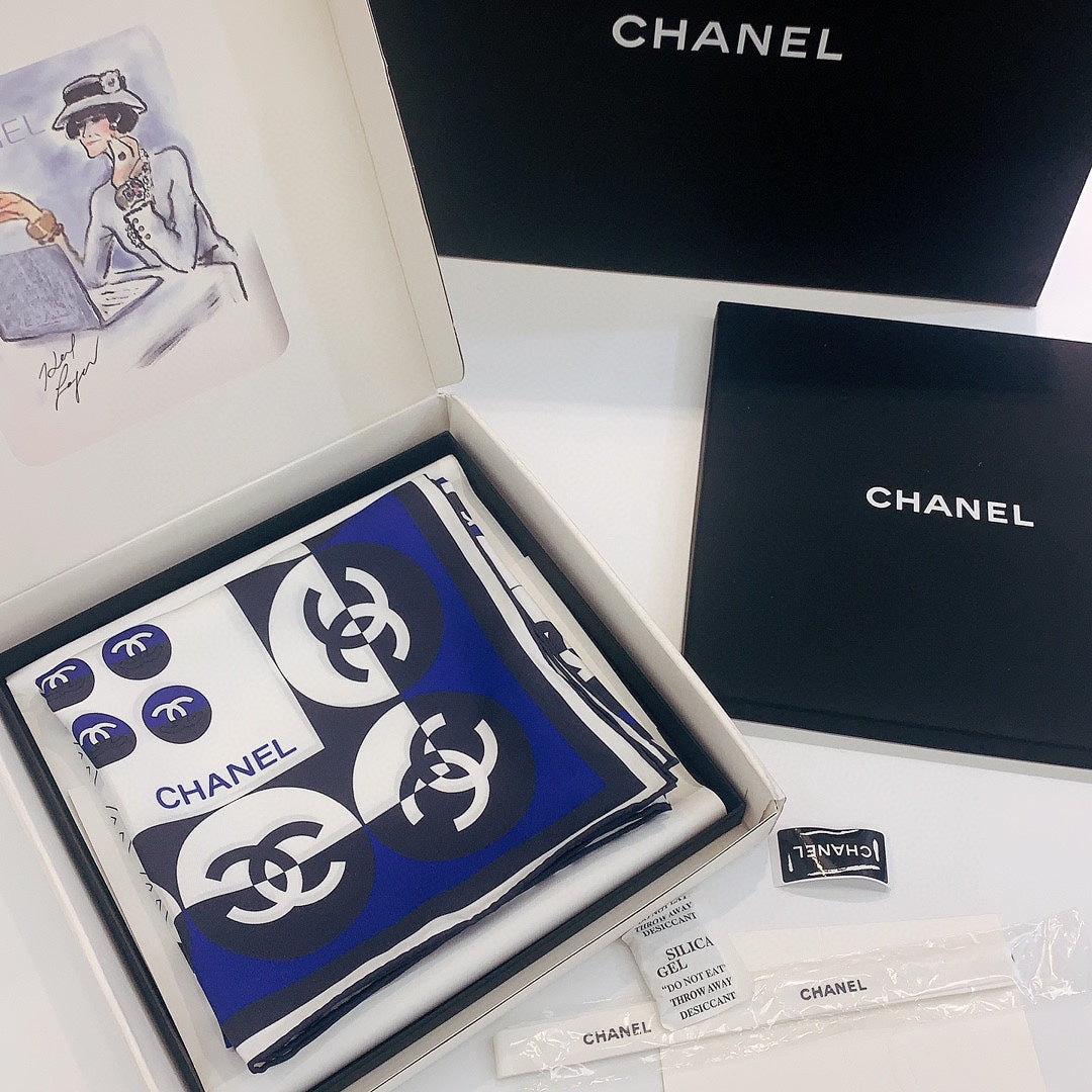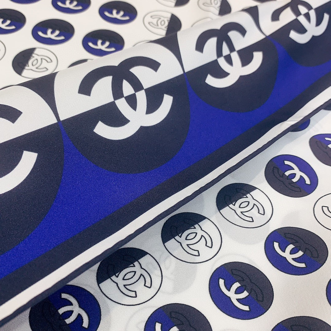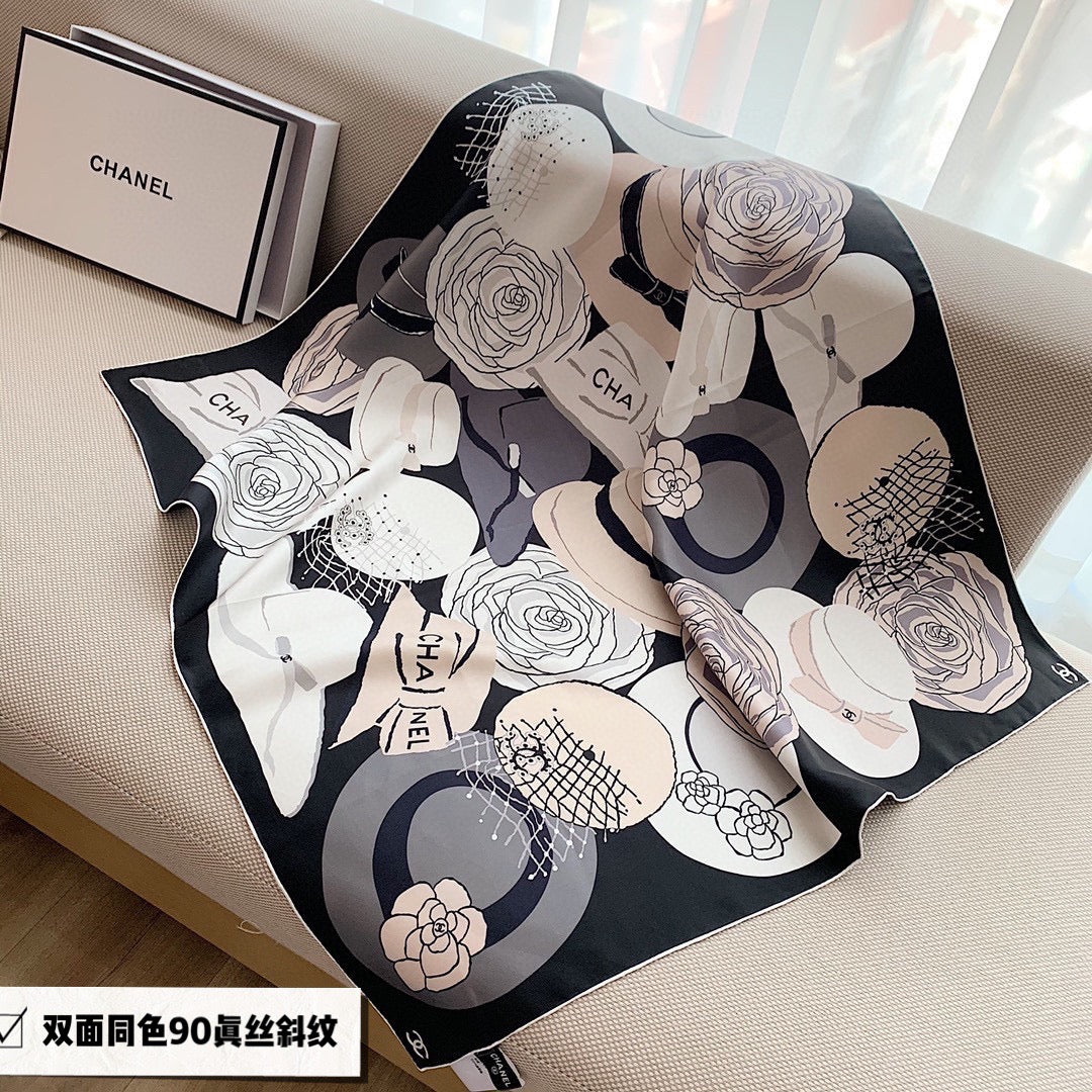 CC Square Scarf 90 CM In Grey Black And White Camellia Logo Print Silk Twill 288739