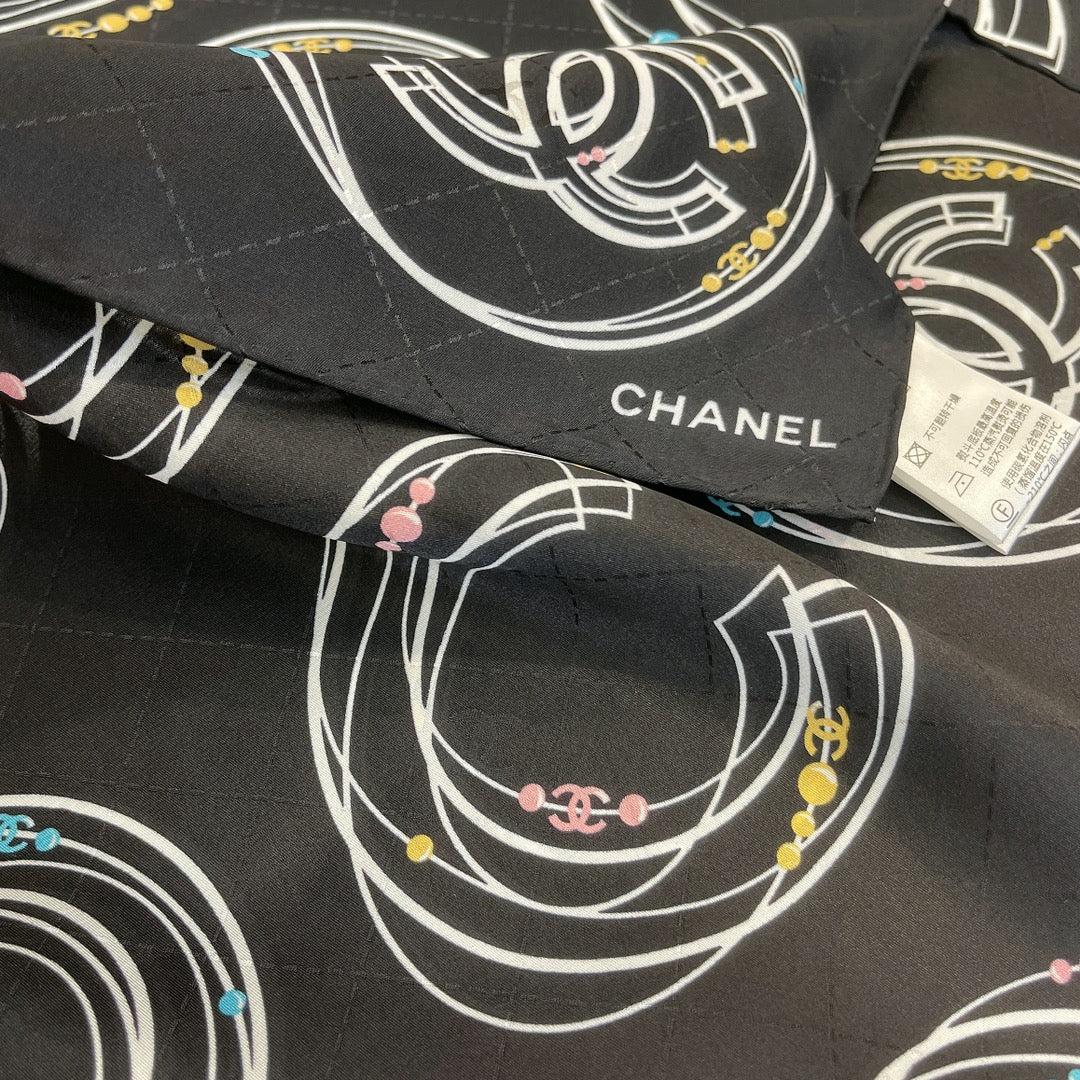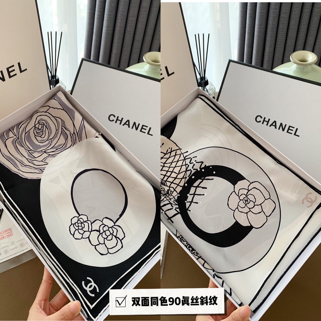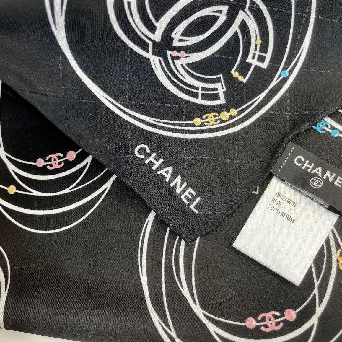 CC Square Scarf 90 CM In Black And White Camellia Logo Print Silk Twill 288740