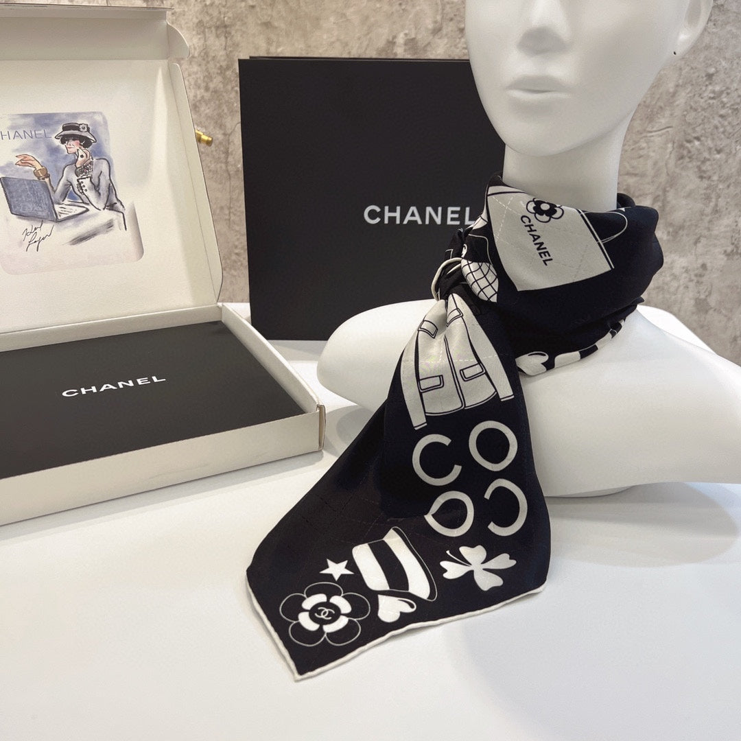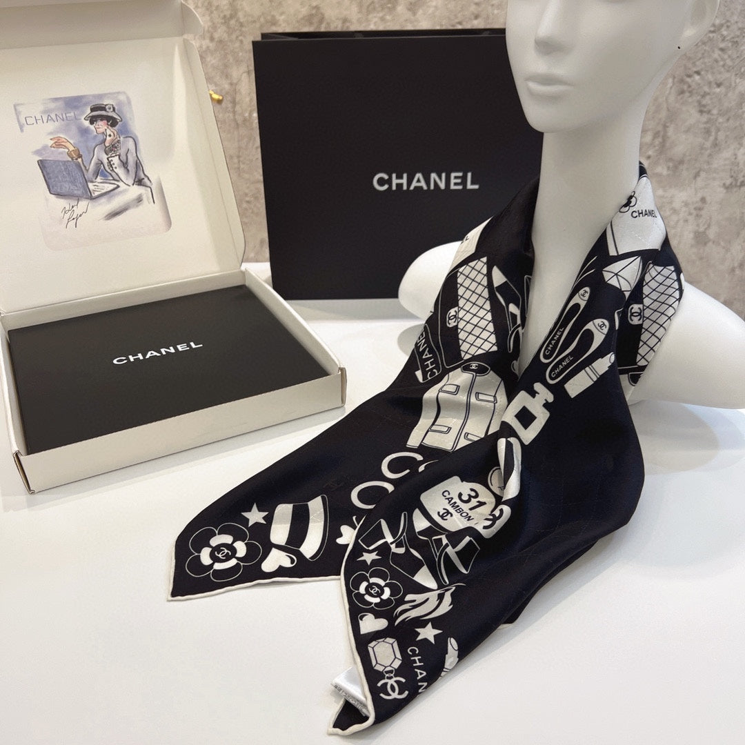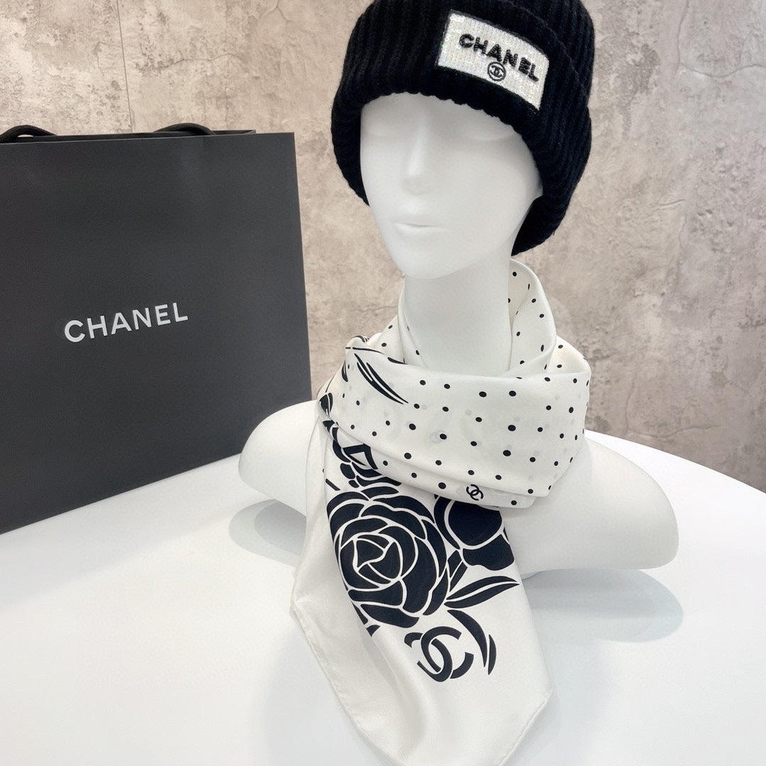 CC Square Scarf 90 CM In Black And White Camellia Logo Print Silk Twill 288740