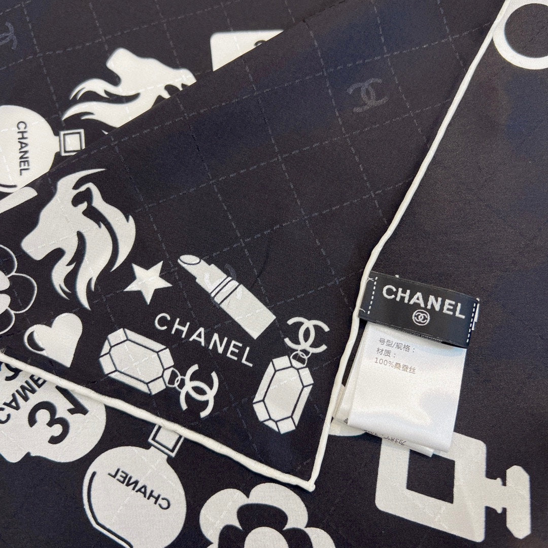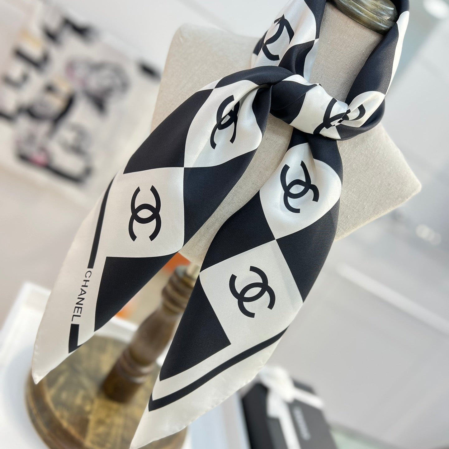 CC Square Scarf 90 CM In Black Mix White Silk 288728