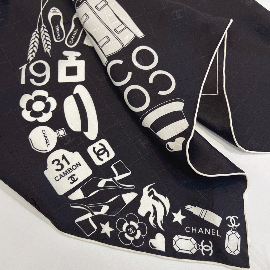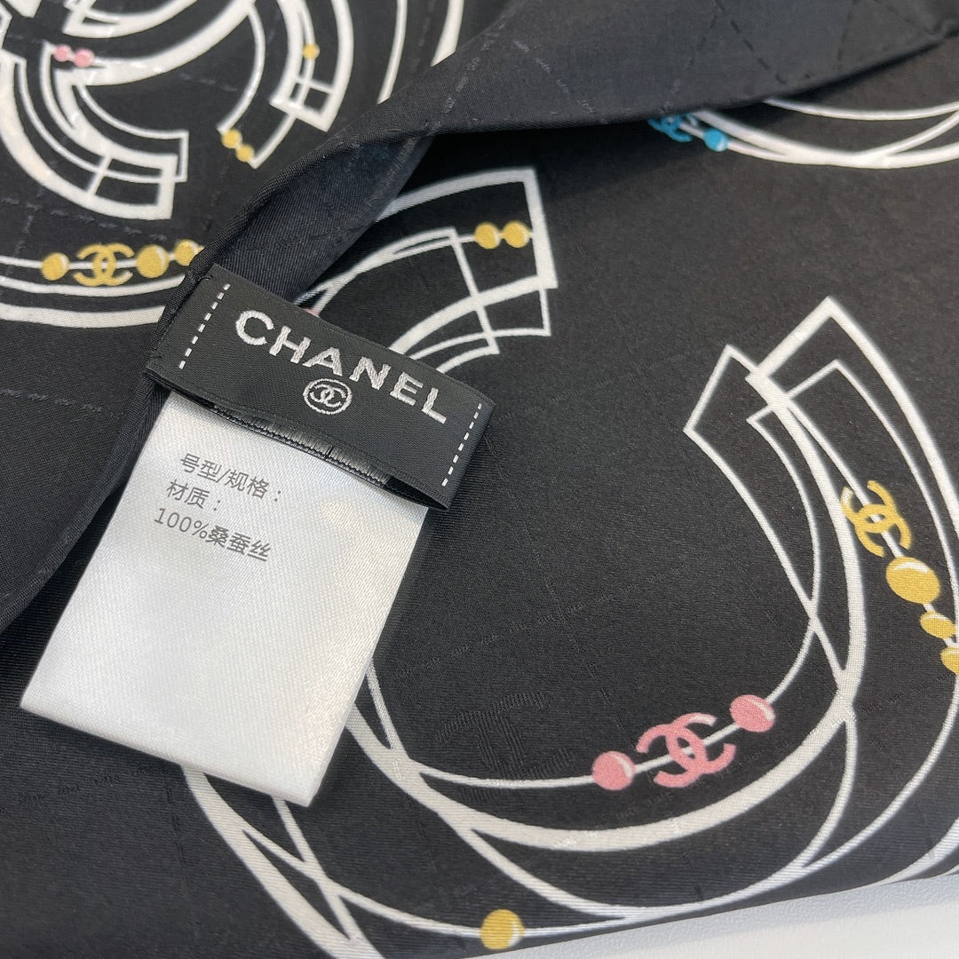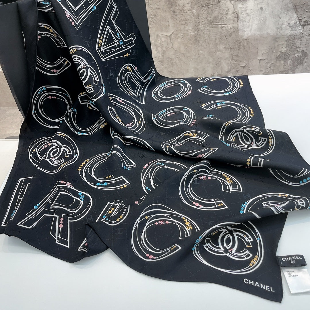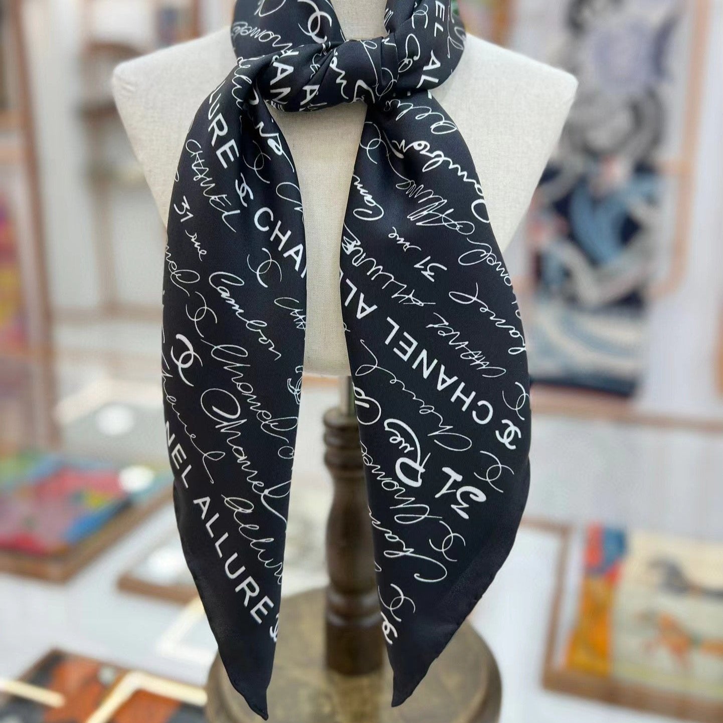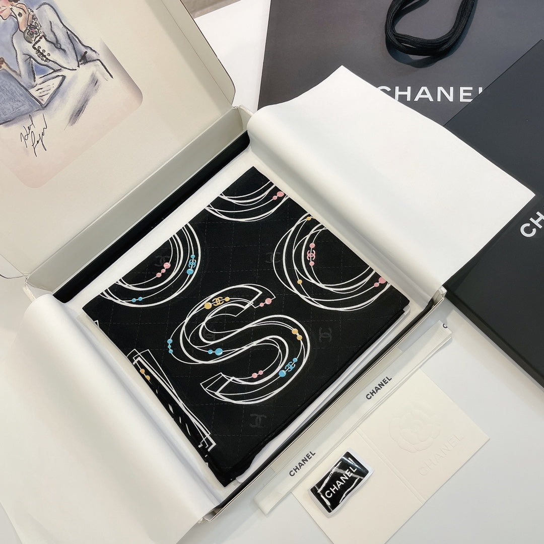 CC Square Scarf 90 CM In Black Mix White Silk 305181