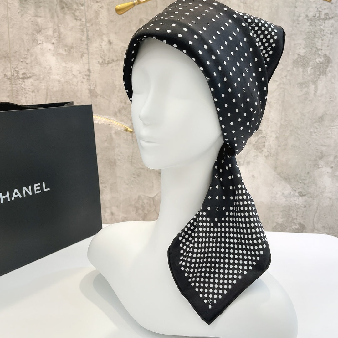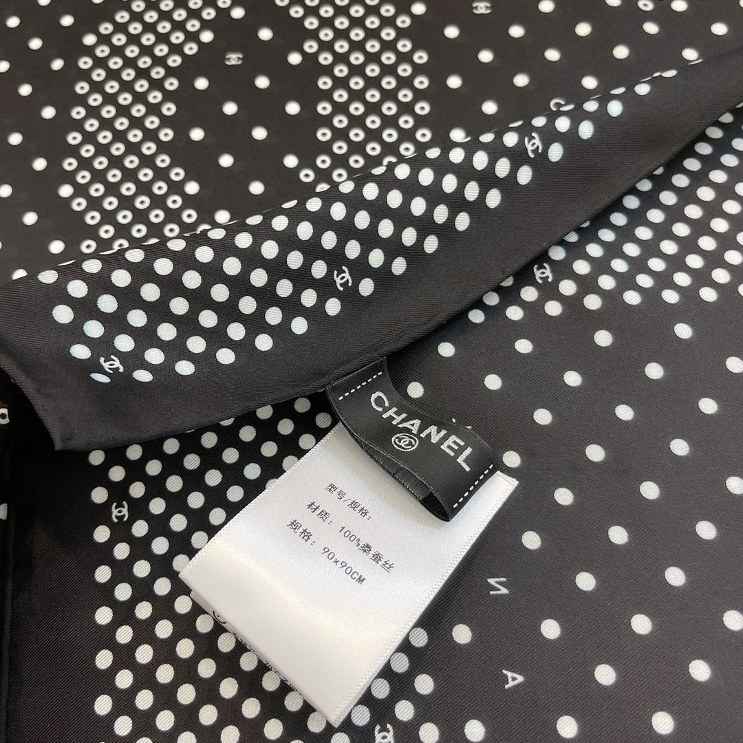 CC Square Scarf 90 CM In Black Camellia Polka Dot Silk 288736
