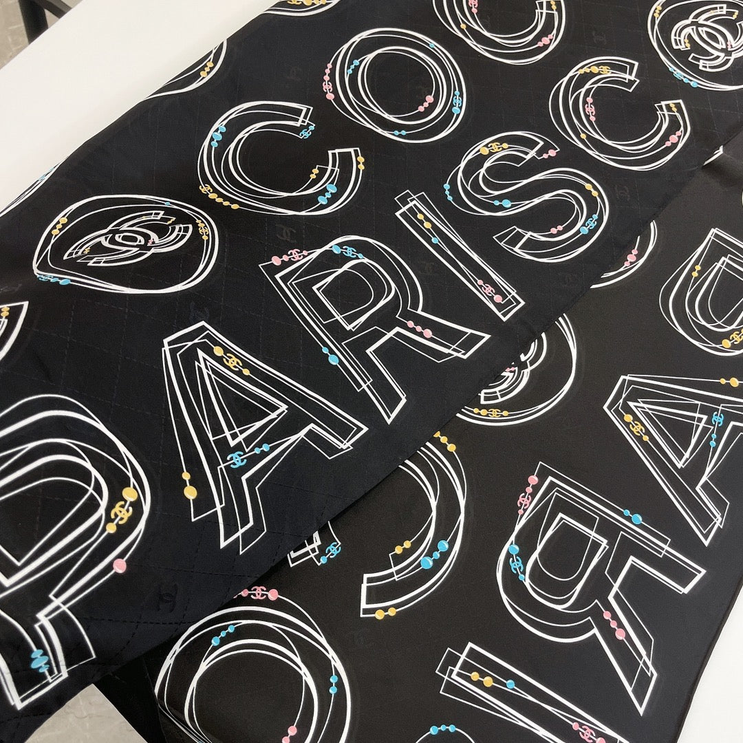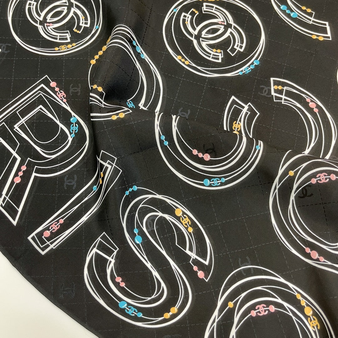 CC Square Scarf 90 CM In Black With White Text Silk 288695