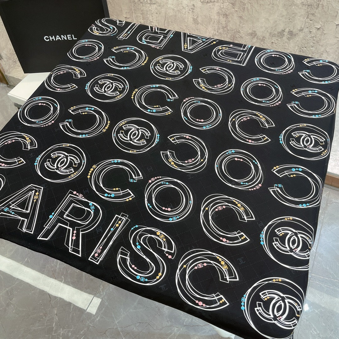 CC Square Scarf 140 CM In Black With White Text Cashmere And Silk 286378