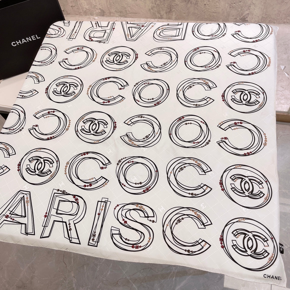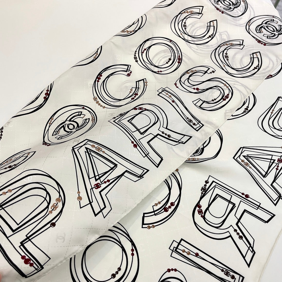 CC Square Scarf 90 CM In White With Black Text Silk 288694