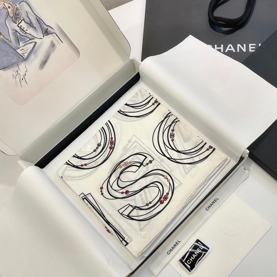 CC Square Scarf 90 CM In White Black Mix Grey Light Beige Silk 288698