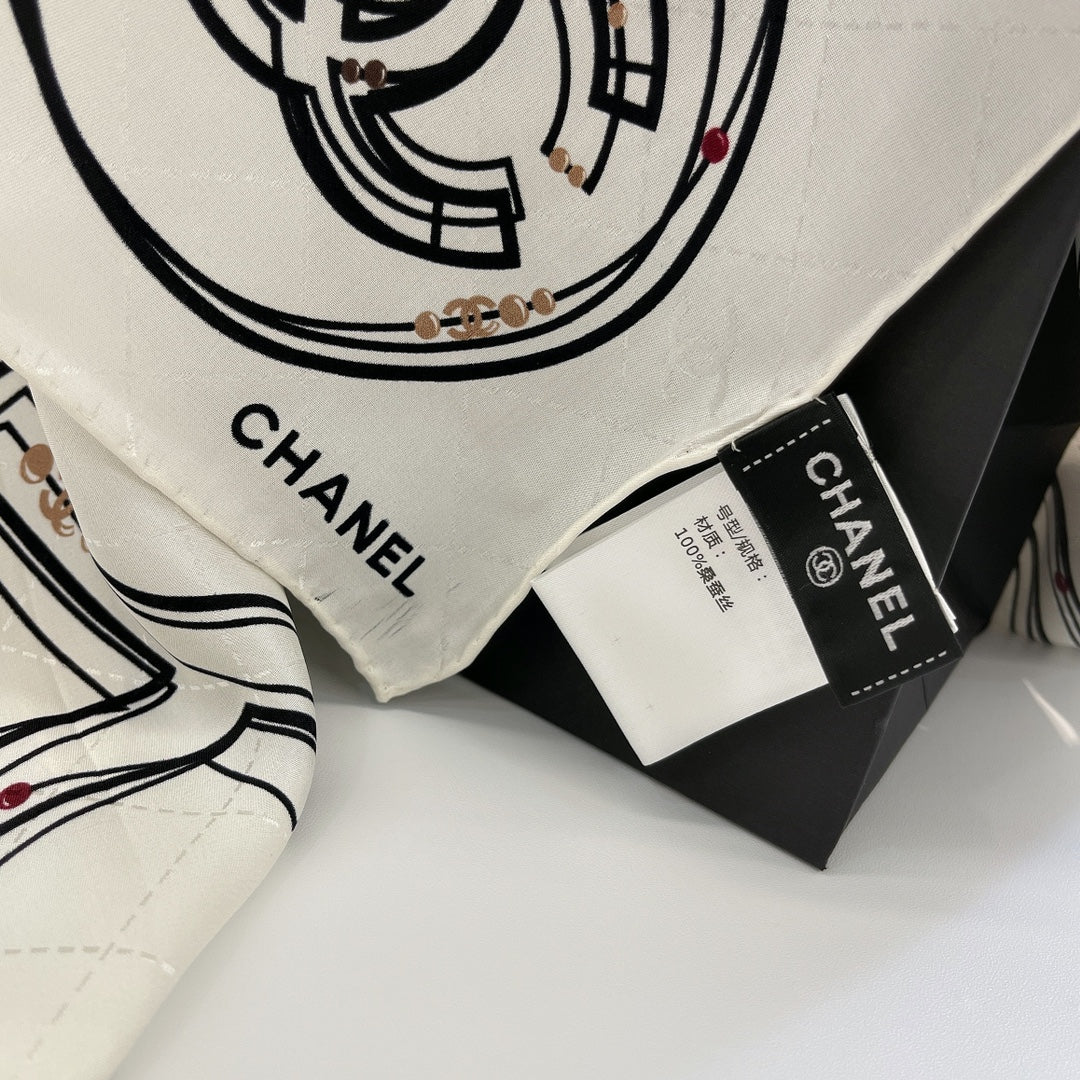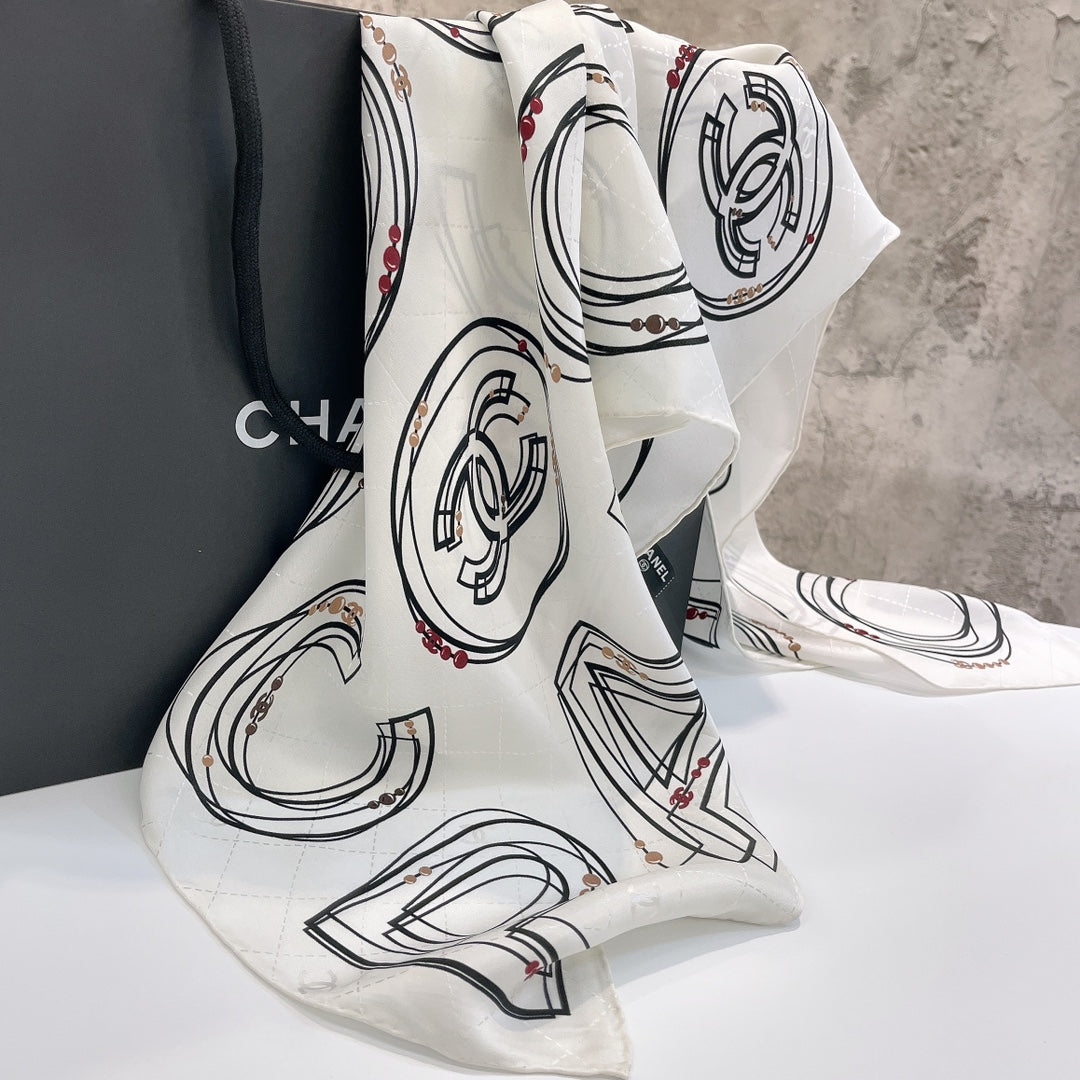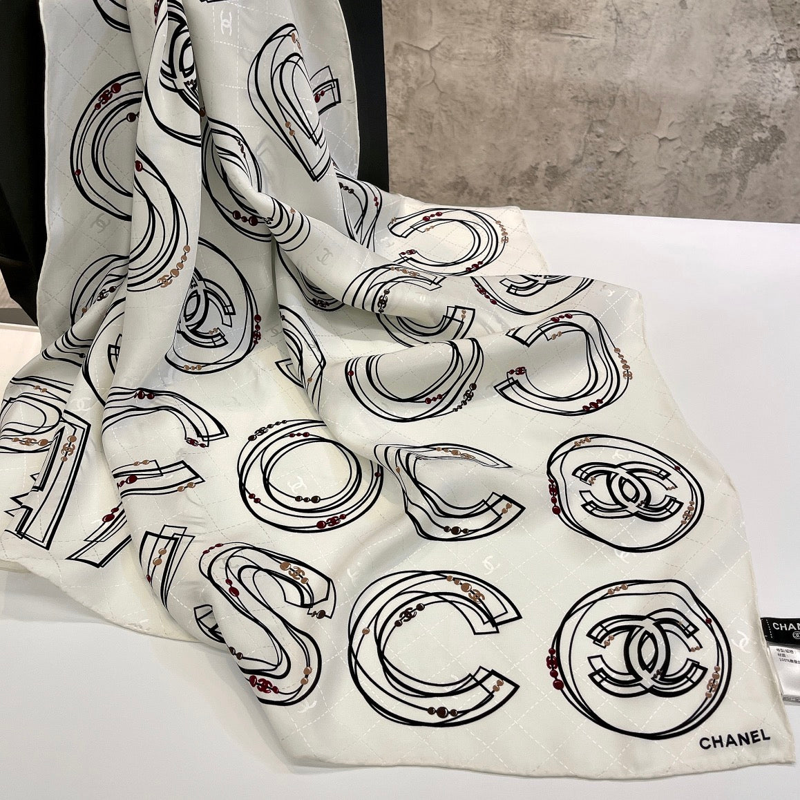 CC Square Scarf 90 CM In White Mix Black Silk 305180