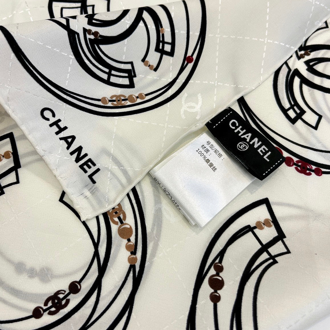 CC Square Scarf 90 CM In White Black Mix Light Beige Silk 288700
