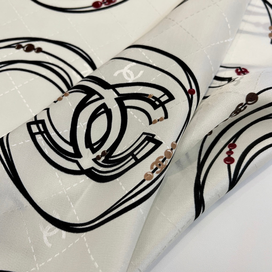 CC Square Scarf 90 CM In White Mix Black Logo Print Silk Twill 288696